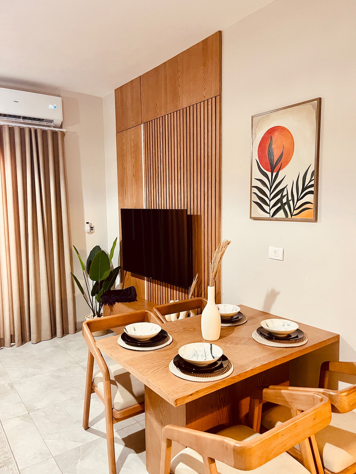 Experience The Forge, an executive King Bed suite in Privado, Madinaty’s premier gated community. Designed in sleek industrial style, it features a spacious living area, large Smart TV, and modern finishes inspired by metal and stone. Perfect for business or leisure, with high-speed Wi-Fi, a fully equipped kitchen, and access to cafés, parks, and The Open Air Mall just minutes away.