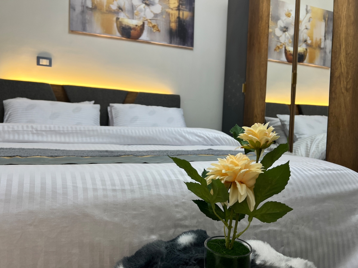 This spacious apartment is fully furnished and equipped with everything you need for a comfortable stay. Relax and watch your favorite movies and TV shows on the sound system with access to Netflix, beIN Sports, Shahid, Watch it, and Starzplay. Located in a central location, close to all the major attractions. Just a short walk for bus station , the shops, and the restaurants. Whether you're traveling for business or pleasure, this modern, stylish apartment is the perfect place to stay.