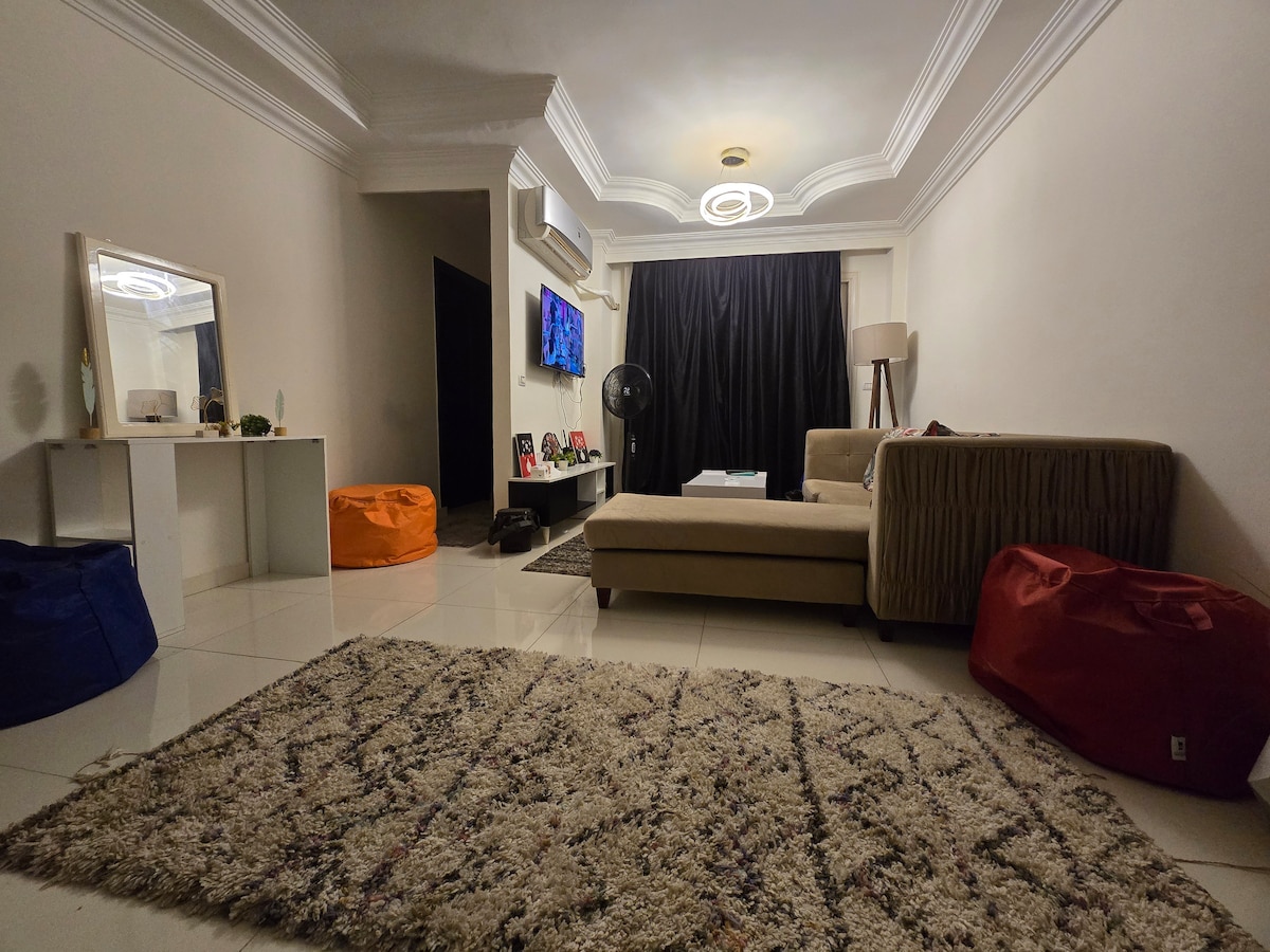 Experience comfortable living in our fully-equipped apartment located in Madinaty, one of Cairo's premier compound. Enjoy all the conveniences of city living with a variety of services and amenities just steps away. Conveniently located just 25 km from Cairo International Airport. Enjoy easy self check-in, and all the comforts of home with 2BR, LR, kitchen, TV, internet and more. Perfect for solo travelers or families. Don't miss out!