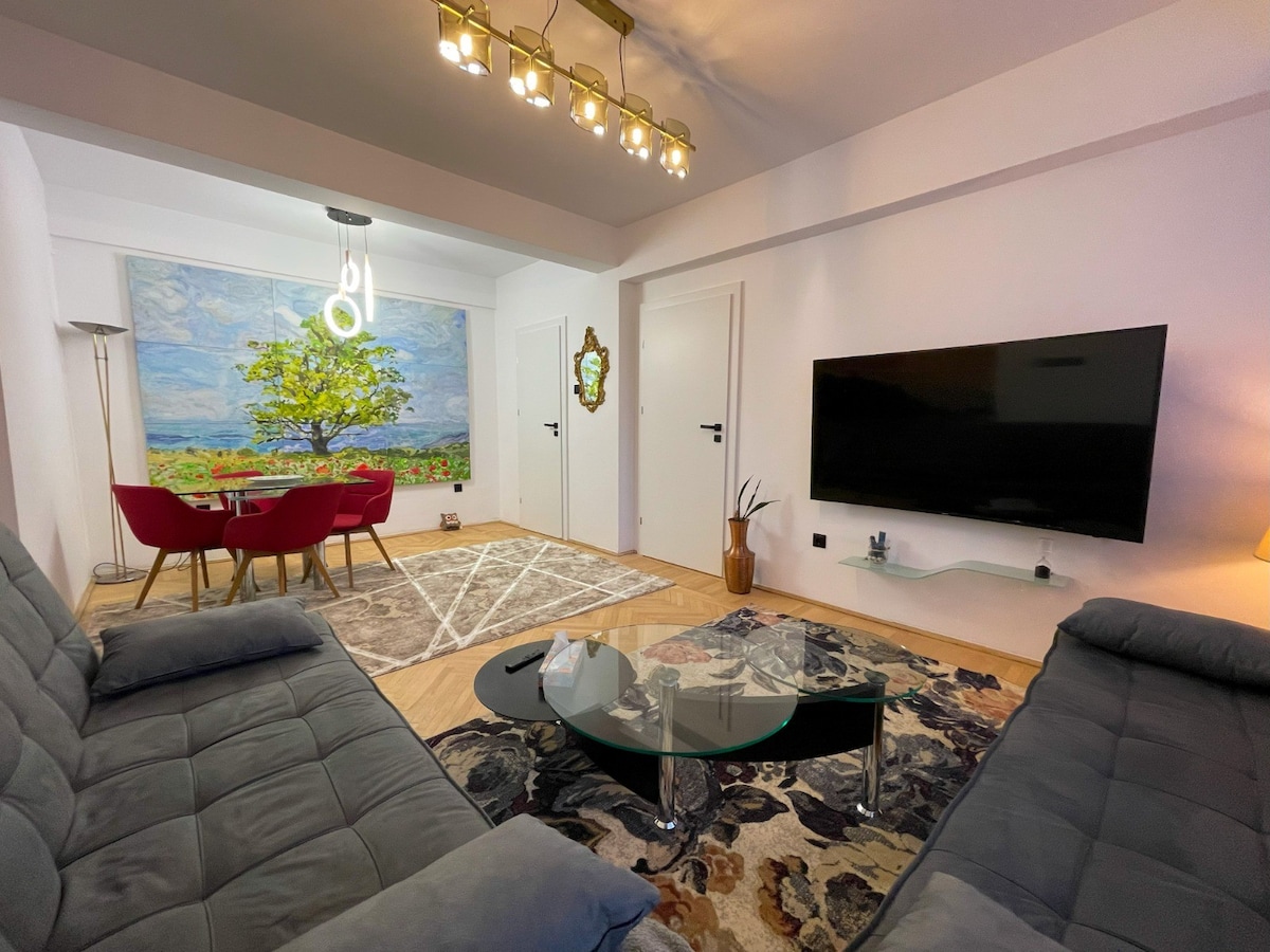 Massage | Terrace | Electric Fireplace | High speed Wifi | Free Netflix HBO Prime | 3 Smart TVs Our apartment is situated right in the heart of Bucharest, at 4th floor, in a Art Deco building, with tall ceilings and large windows, designed, renovated and furnished from scratch to suit 5-Star travellers needs. We know the smallest details make all the difference that's why we left nothing to chance ...BOOK NOW and be part of our story!