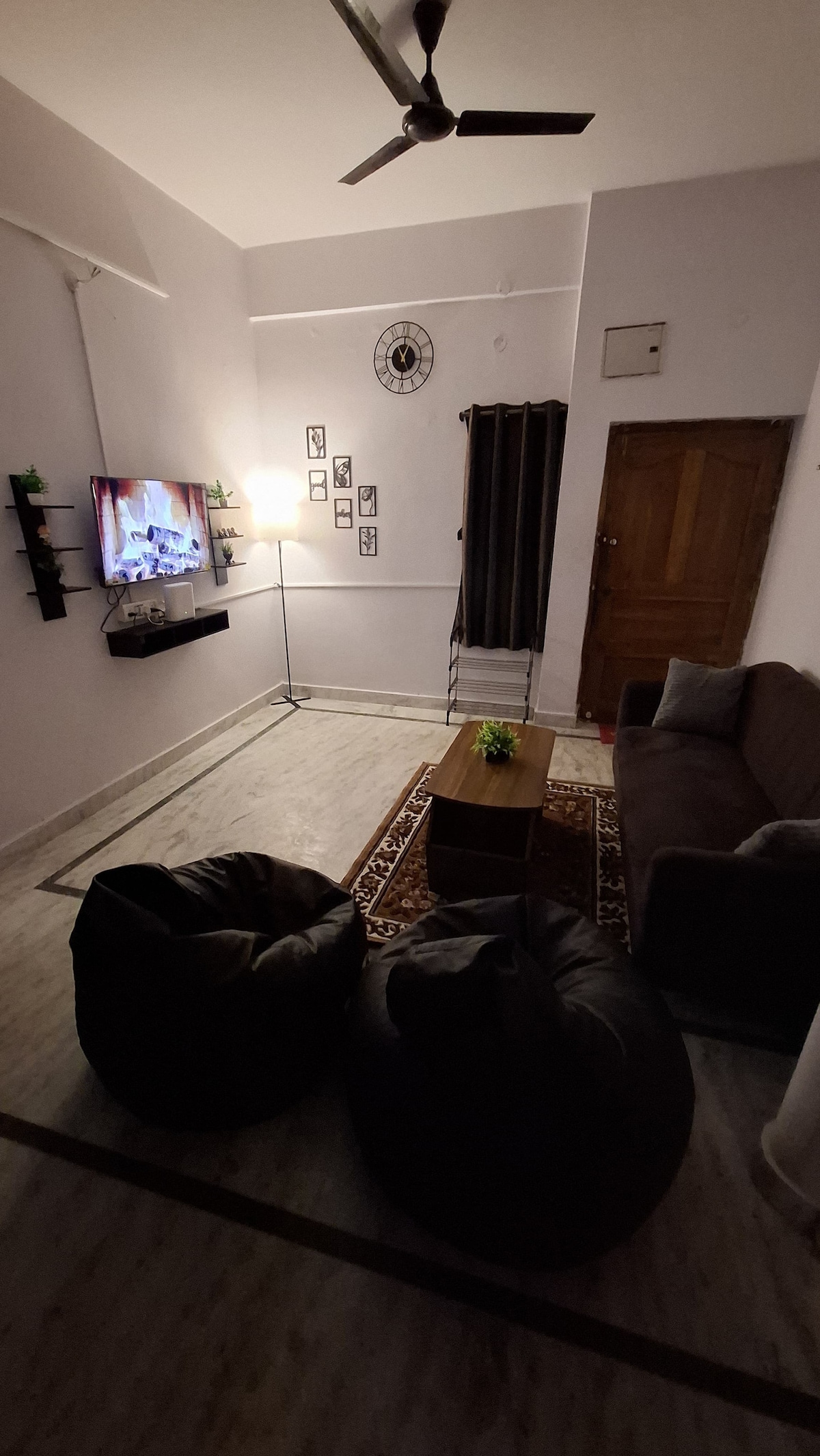 Welcome to your ideal home away from home. Our apartment is on the first floor of the villa without a lift, exclusively for the families only. Unmarried couples and Bachelors are restricted. Our apartment is spacious. A/C in both the bedrooms, with attached bathrooms. Featuring two spacious bedrooms, our retreat ensures a peaceful night's sleep . The master bedroom is with a king-size bed, while the second bedroom is with a queen-size bed, and two additional floor mattresses.