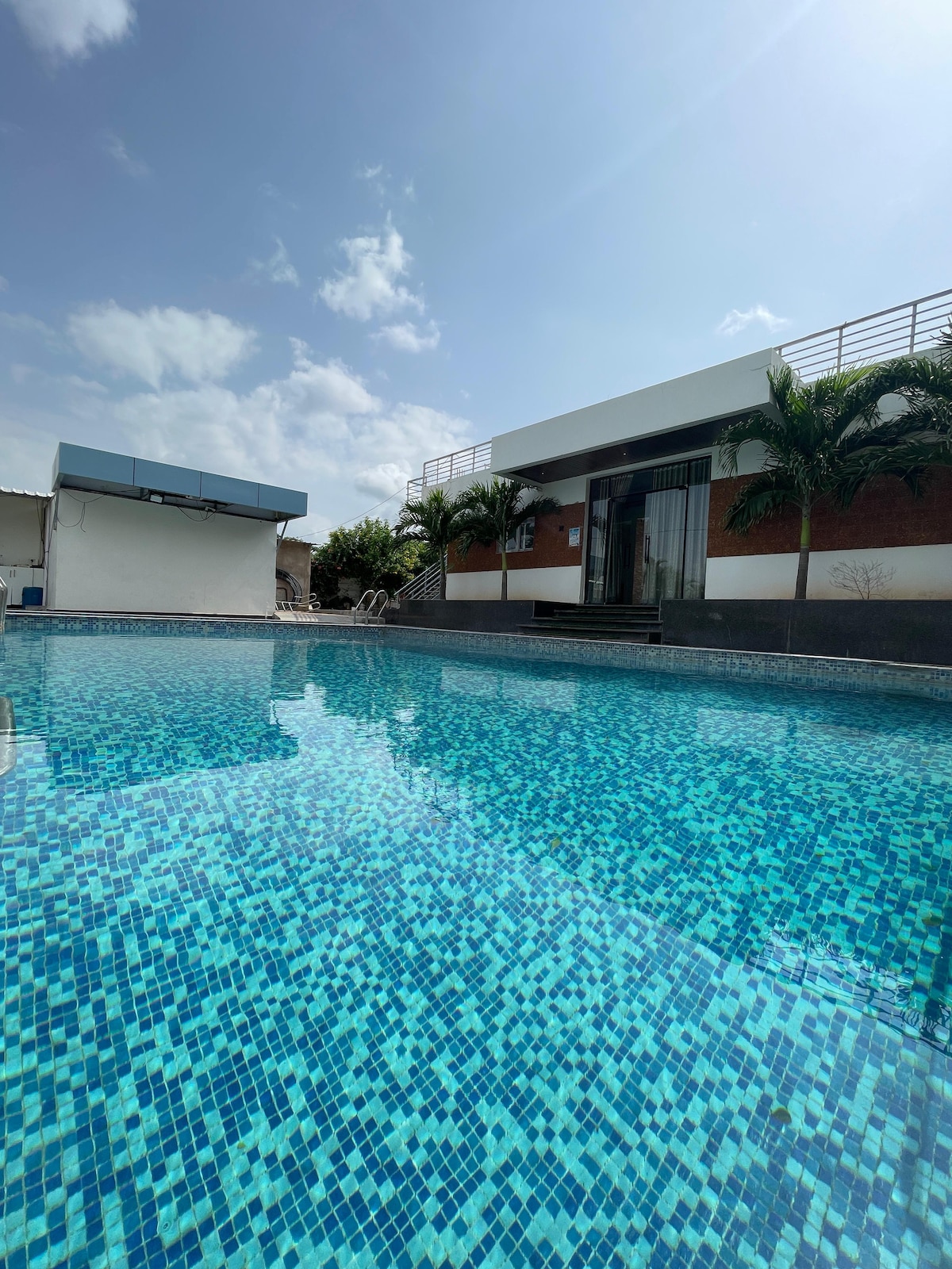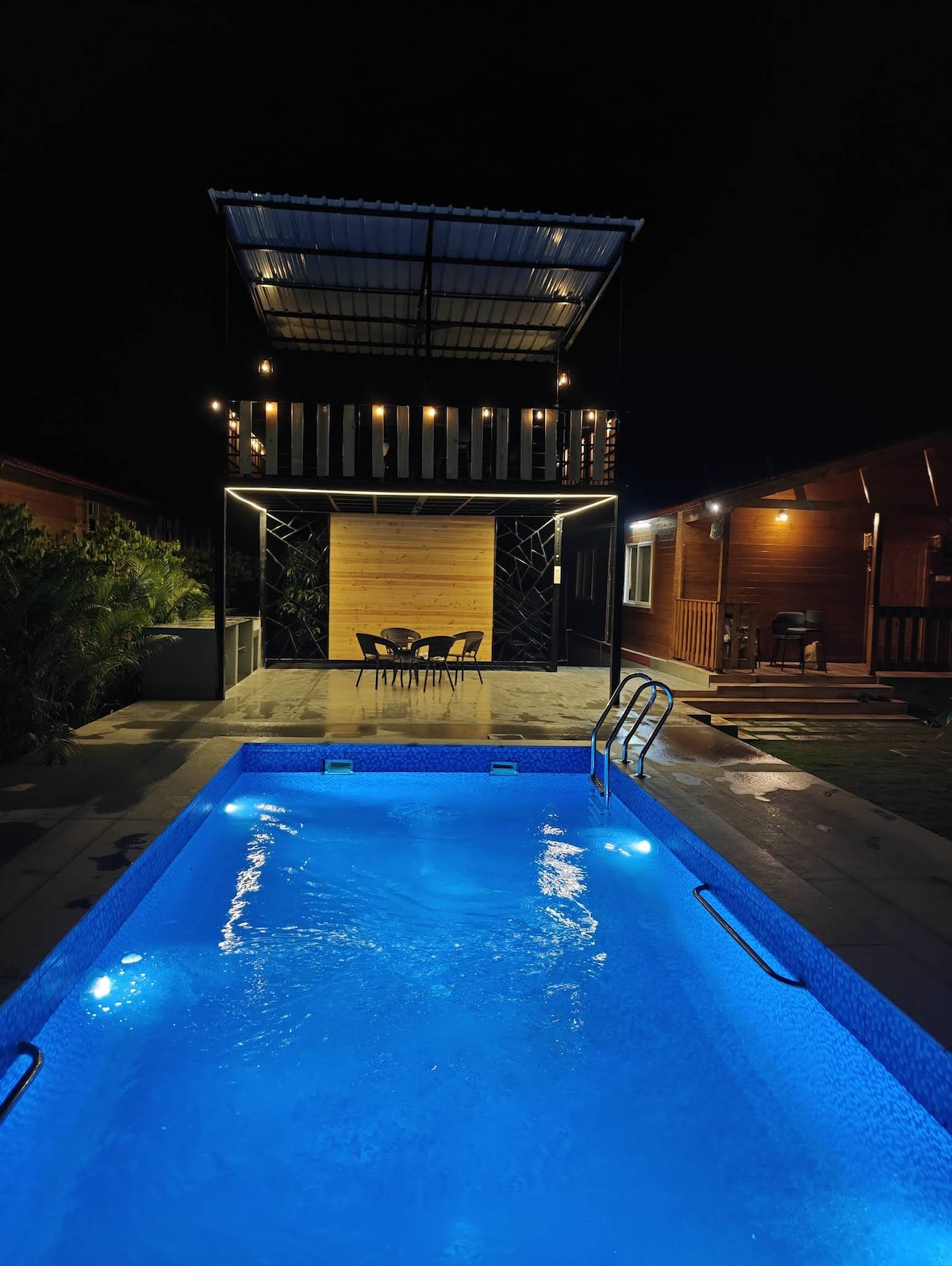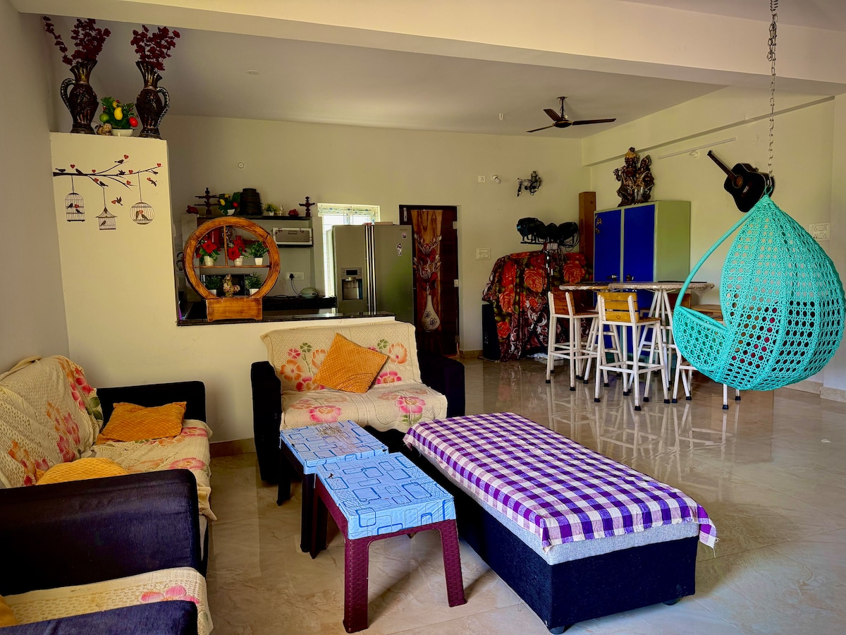 Thrilling escape to our 3BHK wooden cottage, just 25 mins from ORR! Nestled in a serene community with lush lawns, a clean sparkling Private pool, and a gazebo for epic village views. Secured with a watchman, it’s perfect for weekend getaways or parties! Enjoy a campfire, BBQ, projector, Carrom, chess, cricket & a speaker with karaoke. Fully equipped with kitchenware, RO water, Power Generator. 2-min walk to Browntown Resort’s Restaurant & Spa. Touch the grass, recharge, & bond with loved ones!