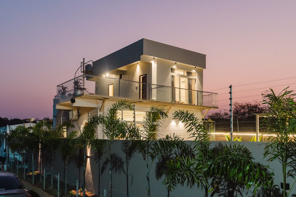 Nestled just minutes from ORR Exit 7 near Shamirpet, our villa is a serene escape where nature and luxury blend seamlessly. With bohemian-inspired interiors and modern comforts, the retreat features a private pool, outdoor gazebo, and a balcony with scenic hill views. Earthy wooden accents, cozy bonfire seating, a fully equipped kitchen, and cosy AC bedrooms with en-suite baths create an inviting ambience perfect for workations, romantic getaways, and family retreats.