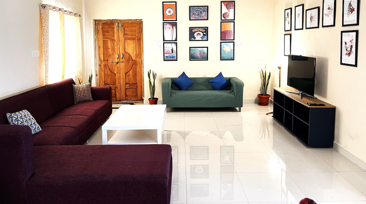 A PRIVATE RESORT STAY EXPERIENCE! Reconnect with nature at this unforgettable escape. A serene and homely 5000 sq ft villa with a swimming pool, lawn and children's play area nestled in an 8 acre mango farm. We take reservations for family stays, parties, events, weekend getaways, movie shootings, etc. Outside food is prohibited.