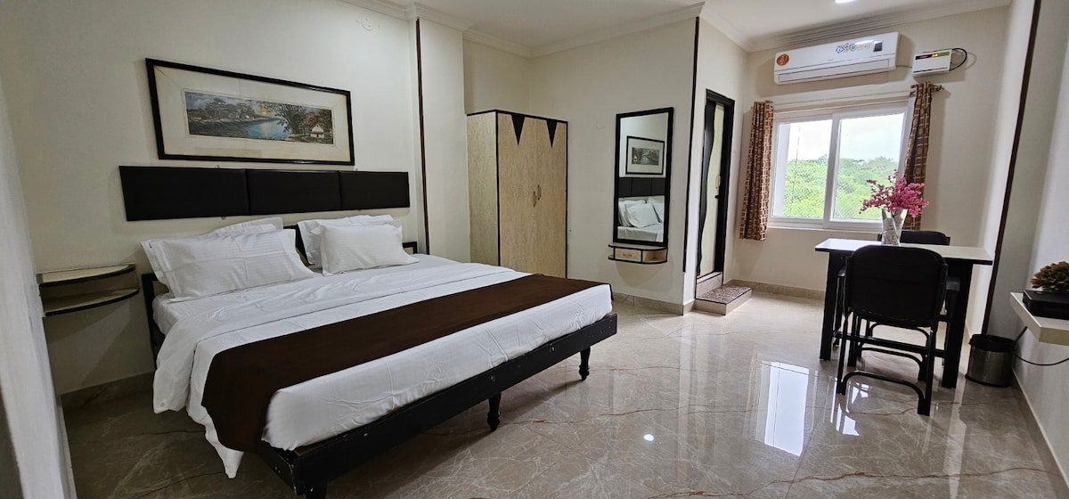Experience luxury in our 750 sq. ft. Presidential Suite in Gachibowli—perfect for corporate stays. Spacious, elegant, and fully serviced with an ensuite bathroom, high-speed Wi-Fi, and concierge support. Walk to top restaurants and hotels; reach Hitech City and Financial District in 10–20 minutes. Ideal for executives seeking comfort, privacy, and convenience in Hyderabad’s prime business hub.