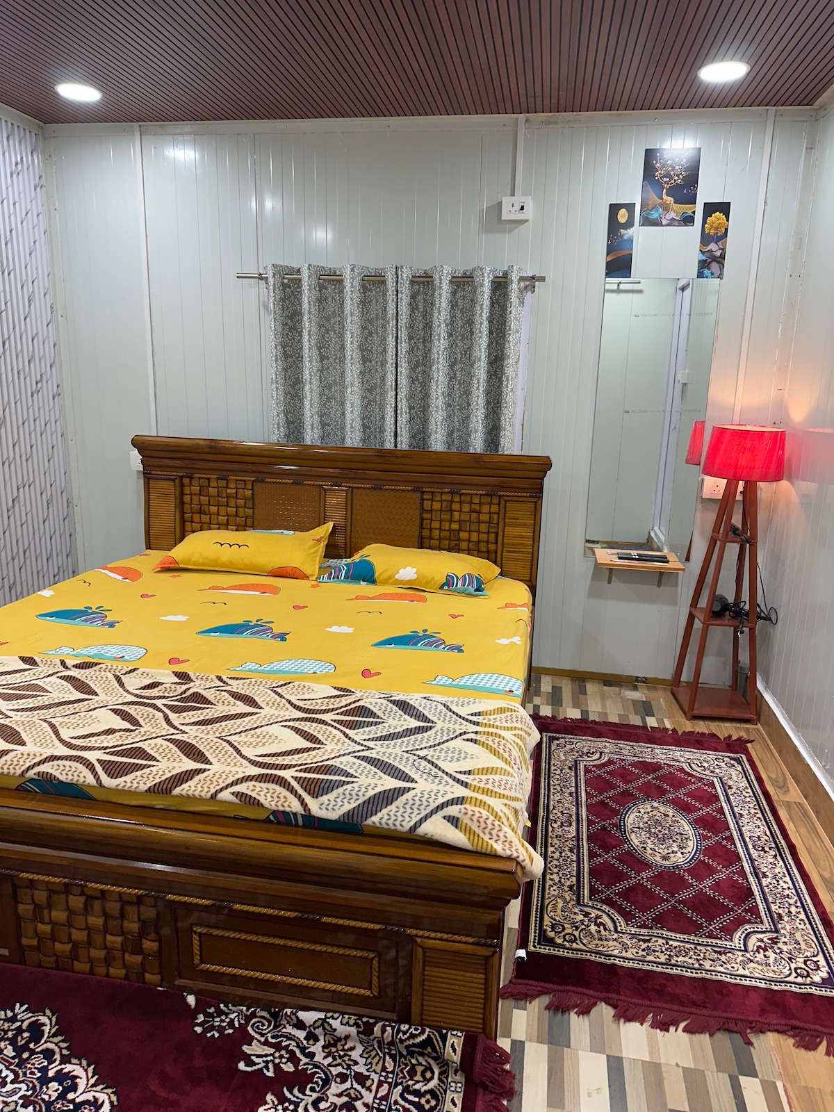 Experience a peaceful stay in this 1 BHK house—ideal for families and small groups. ✨ The Space Compact living hall with a 12" California king memory-foam floor mattress and a 2-seater recliner sofa. Functional kitchen with UV + RO Aquaguard. Master bedroom: Queen-size memory-foam mattress, large wardrobes, attached bathroom and wash basin. One separate (detached) bathroom. 6-seater dining table with wash basin. Non-AC home in winters; air cooler can be provided on request.
