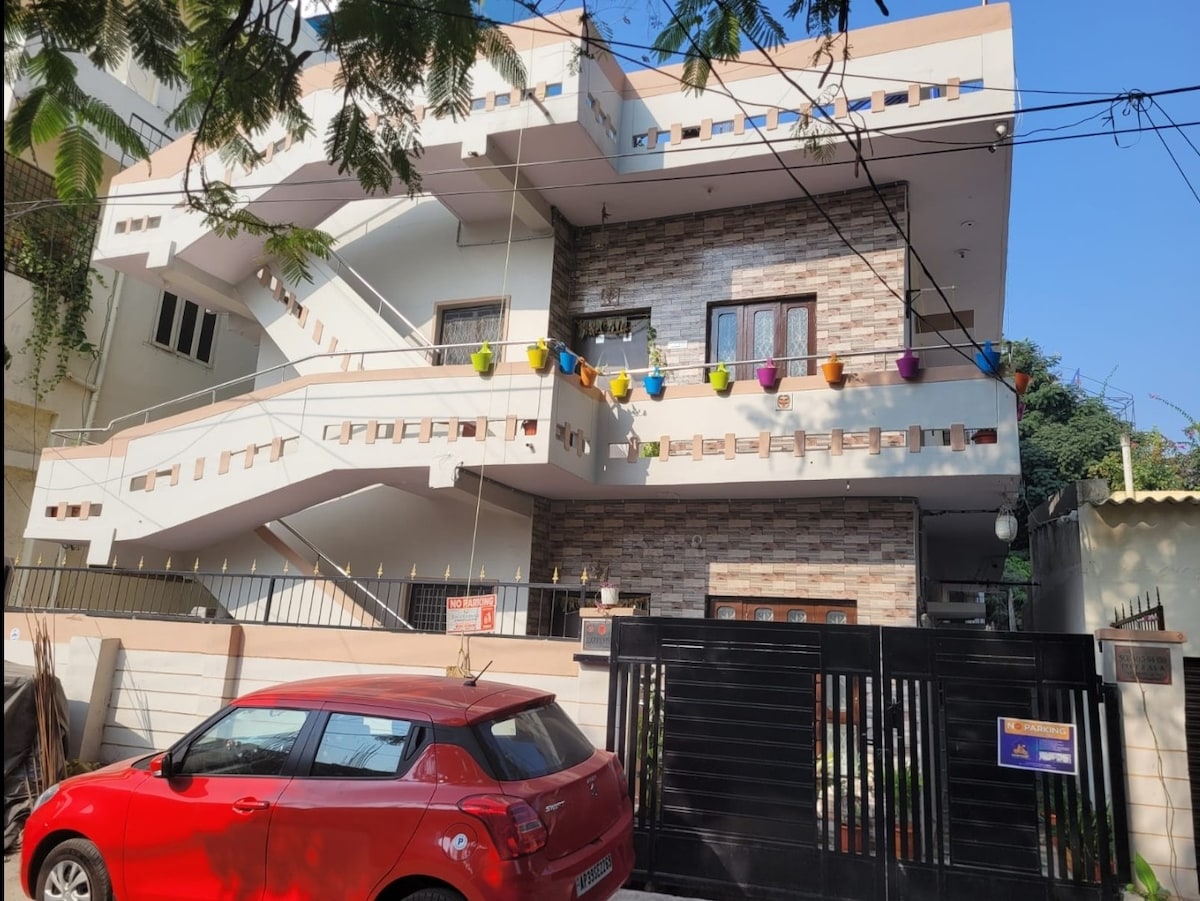 The house is centrally located and well connected to all places 1. 800 mtrs from Malkajgiri rly station 2. 4.5 km from Secunderabad Rly Station 3. 2 km from Mettuguda metro station 4. 100 mtrs from Hanumanpet junction We also provide bike(pulsar) on dialy rental basis The space A cozy pent house room with TV,AC,Fridge and attached washroom. You will have access to terrace.Relax with the whole family at this peaceful place. Note-Not available for unmarried couples and do not allow parties.