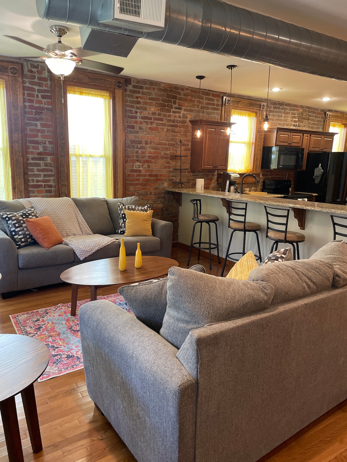 SuiteSeven A - We would love for you to come and stay in one of our beautiful apartments A or B. Both have been newly renovated in historic downtown Sedalia. Our apartments are walking distance to restaurants, night life, shopping and the best coffee shop is only half a block away! Both the units are meticulously clean and very comfortable. We are located very close to the Katy Depot Train Station and only a hop skip and a jump to Katy Trail for all you bicycle enthusiasts.