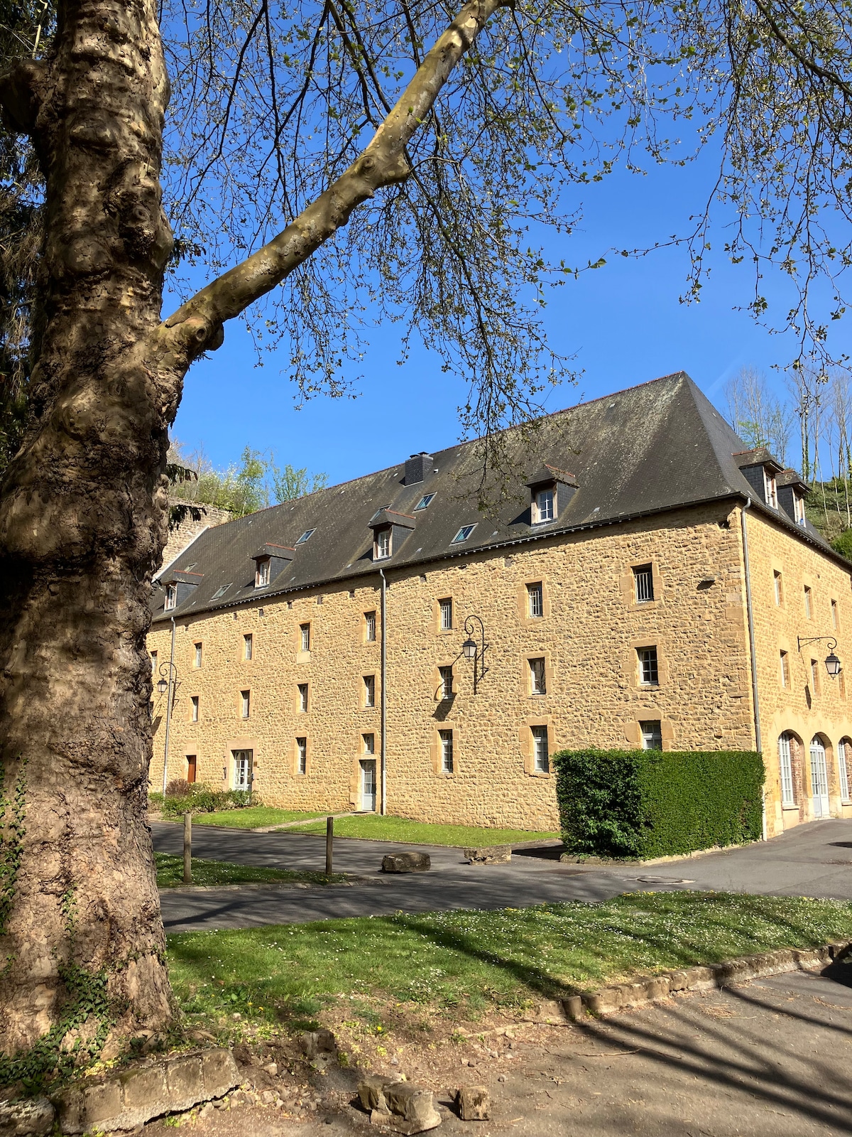 Venez séjourner au calme tout en bénéficiant de la proximité des commerces environnants. Nous sommes situés à moins de 5 minutes du centre historique de Sedan et de son château médiéval (monument préféré des Français). Le studio est spacieux et lumineux, ouvert sur une terrasse couverte par une pergola, avec vue sur le parc. Chambre avec petite cuisine et espace repas, TV. Salle d'eau avec WC. Le studio dispose d'une entrée indépendante.