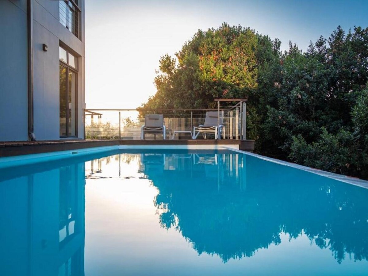 Explore the beauty of the Garden Route from Forest Hill Wilderness, at the peak of the Constantia Kloof Conservancy. Surrounded by majestic indigenous forest and just minutes from the vibrant village filled with exceptional local restaurants. Enjoy peace of mind with solar power and inverter backup. For larger groups (up to 10 guests), there's also the option to add a self-catering flatlet. Let the ocean breeze, tranquil nature, and luxurious rooms create the perfect setting for any occasion.