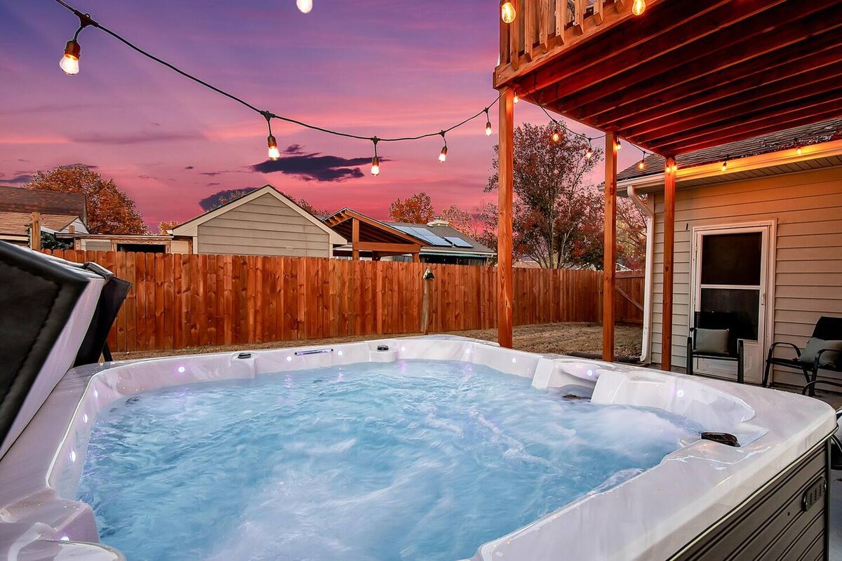 The Lodge is a spacious 4 bed, 2.5 bath home, styled with mountain/ lodge decor. It boasts unbeatable amenities and a great location that people of all ages can enjoy! Nestled in a quiet North West Wichita neighborhood, this house is just minutes from New Market Square, Goddard and Maize. Remodeled with luxury vinyl flooring throughout, granite countertops, and, this home has beds for up to 10 people. Its unbeatable amenities include 2 livings spaces, Hot Tub, Gym, Game Table, Arcade, Bar