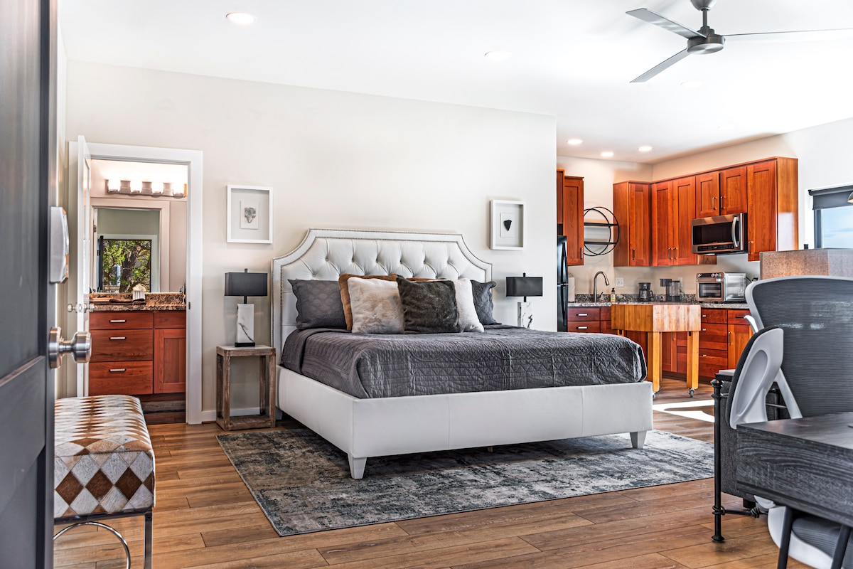 Stay steps from Sedona’s best shops, restaurants, and Jeep tours at the Sage Apartment with hot tub. In the heart of Uptown, you’ll be minutes from iconic trails and vibrant nightlife. This freshly remodeled retreat features Ralph Lauren 100% cotton bedding, plush towels, and cozy robes for the hot tub. With a full kitchen and free parking, you’ll have everything you need for a stylish, comfortable, and unforgettable Sedona getaway.