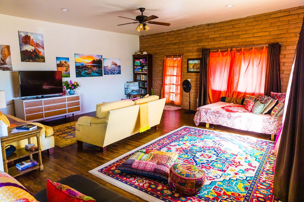This is a bright and tastefully decorated industrial bohemian loft in West Sedona where you will find comfort, entertainment, relaxation and inspiration. Close to restaurants, biking and hiking, the bohemian loft is ready for you! The loft is fully renovated and we are continually adding new pieces of local art, my husband’s tile and glass work, my sister's photography, my uncle and grandfathers paintings, as well as my paintings, my girlfriend's pottery... among other contributions.