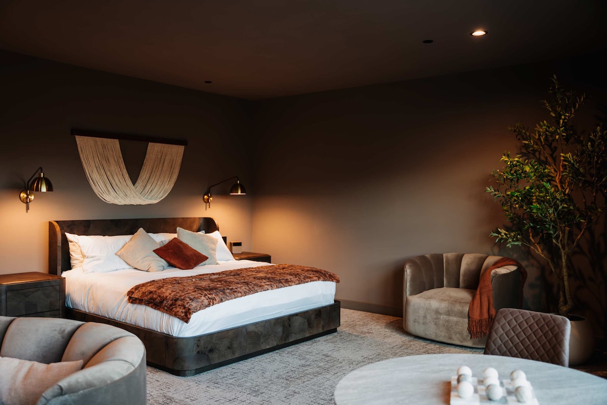 Immerse yourself in the grandeur of Sedona’s canyons with the celestial-inspired Aries Studio. With sweeping southern views with Cathedral Rock in the distance, this studio loft features a plush king bed draped in silky linens, inviting rest and relaxation. The spa-like bathroom features a spacious rainfall shower with artisanal bath salts, perfect for unwinding after a day on the trails. This beautifully appointed loft blends cosmic serenity with desert elegance.