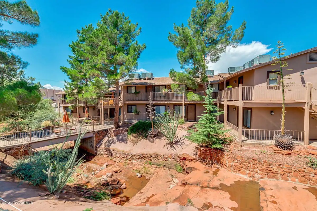 Newly remodeled! Nestled in the heart of the Village of Oak Creek, this quiet, top floor corner condo is the premier unit in the complex for its stunning views of Courthouse Butte. Walk to hiking trails, shopping, restaurants, coffee shops, pubs, art galleries, yoga & golfing in this safe and supremely walkable area. Enjoy the pool (Mar-Oct), stargaze in this International Dark Sky Community and relax at night with a sleeper sofa, 3 TVs & blackout curtains. It’s your perfect home base!