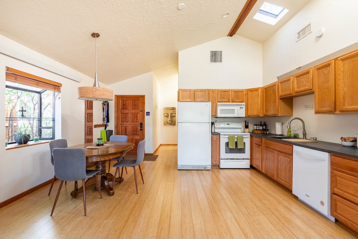 Quail Hollow casita is a "small house" that has everything you need! You'll be located in Jack's Canyon, which is a 5 minute ride to the Village of Oak Creek. A kitchen remodel with stainless & granite was completed in March of 2021. The back of the house features a rear deck with pergola and walk down stairs to a patio with fire table and zero gravity chairs. We recently updated our internet to high speed Starlink - no limitations on streaming or Zoom calls!
