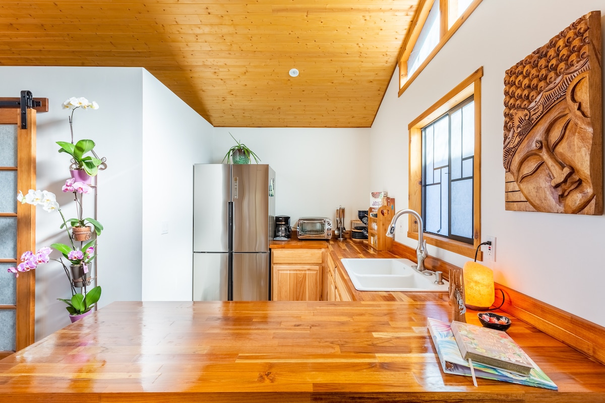 Our newly built tiny home is in the heart of West Sedona. It’s is a spacious zen Tiny home. Wake up to breathtaking views from a Queen size tempurpedic mattress. The kitchen has a hot plate and convention oven to make amazing meals with. And of course a coffee maker with organic beans. We leave fresh organic cream and granola for every guest. The tiny home is on a quiet street but close to everything.