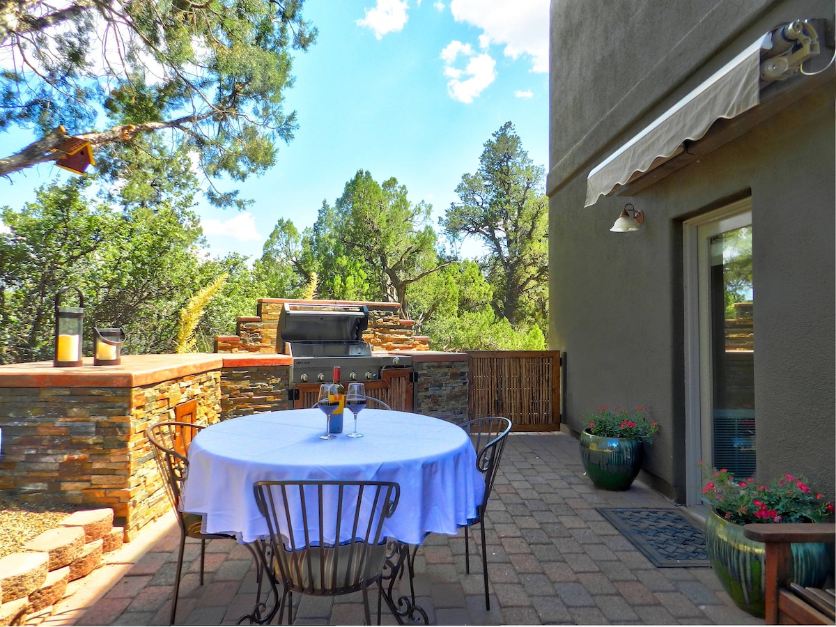 Come, relax and stargaze. Enjoy your yoga sessions among the huge trees. Flowers and green spaces invite you to linger on the terrace and enjoy the brilliant sunsets. In winter, crystal views and warm lap rugs make stargazing and early morning coffee a delight. Our cozy, tasteful cottage is in the heart of Sedona: very private but walking distance to Oak Creek and Tlaquepaque. From your private porch watch the incredible sunset colors or full moon rise over the eastern formations. Pure magic!