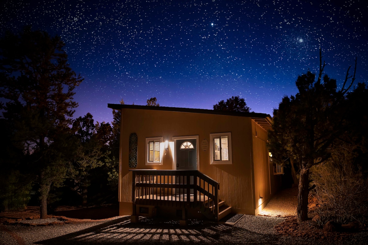 在舒适的小屋中醒来,欣赏塞多纳山脉的美景