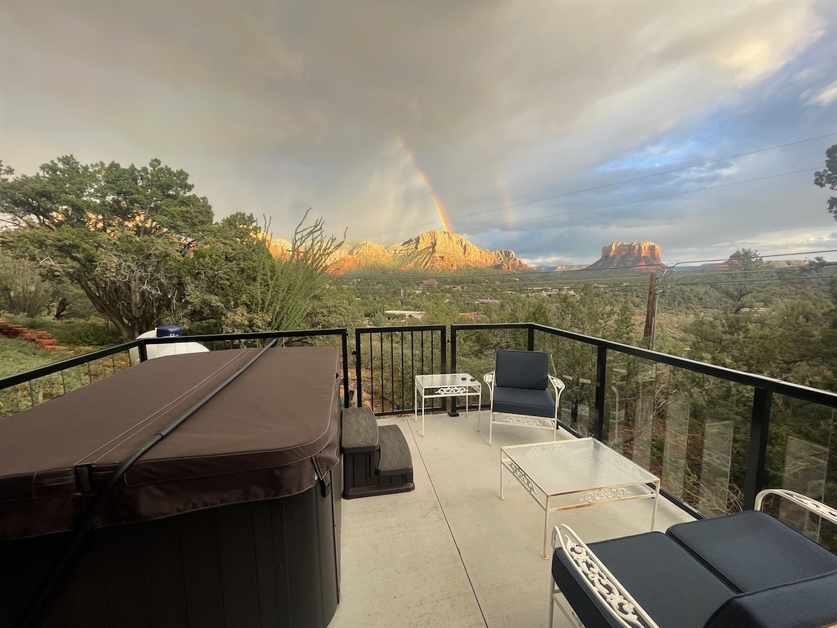 Experience Sedona’s magic at Sienna — a romantic studio retreat with 270° panoramic red rock views, private hot tub, and wraparound deck. Perfect for couples, honeymooners, or anniversaries. Enjoy sunsets from your deck, explore nearby trails, or relax in your cozy king suite with full kitchen and breathtaking views of Cathedral and Bell Rock. A peaceful, private oasis just minutes from Uptown Sedona. Check the reviews and hear what others are saying.