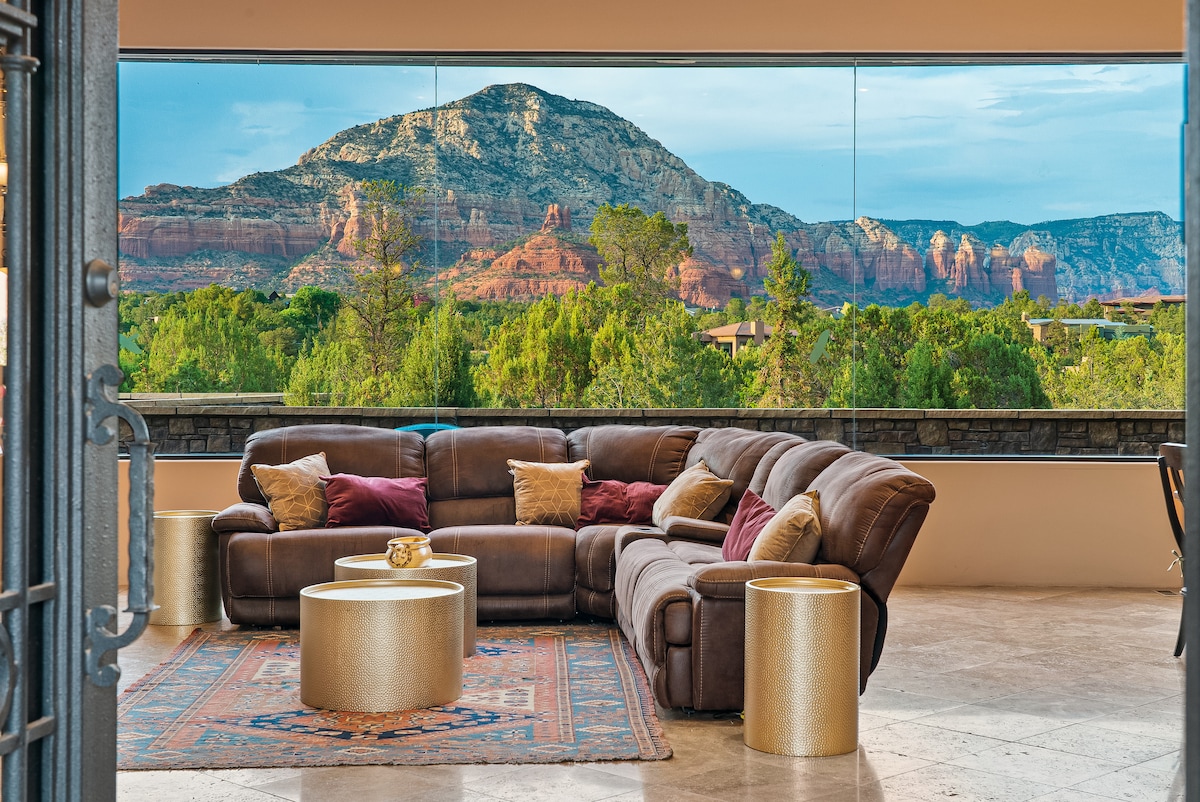 Newly completed 4000 sf remodel of a luxury modern retreat that stands alone in terms of design and style. The house boasts a private movie theatre and game room with pool table and bar that provides a space to hang out with friends and family while on vacation. Magnificent views from all living areas and bedrooms. Located in the highly desirable West Sedona neighborhood with all the conveniences of grocery stores, many shops, top restaurants, hiking trails, and ATV/bike rentals! Book quick!
