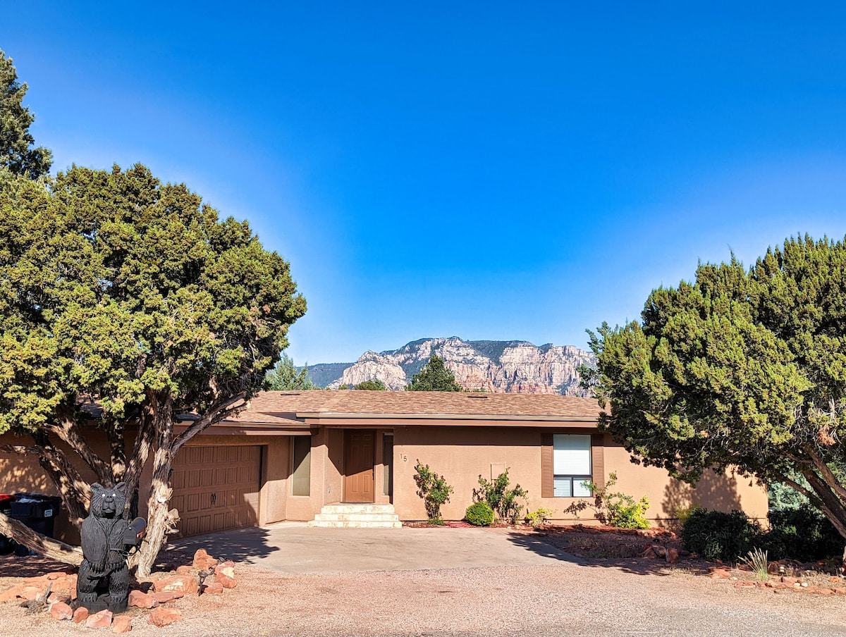 Enjoy the views and relax with your friends and family in this clean and updated five-bedroom, four-bath home tucked into the red rocks, literally steps to hiking and biking trails and vortex sites. This is a two-story home with a large deck facing Thunder Mountain and a grassy backyard perfect for the family! This home is also near shopping, restaurants, galleries, coffee shops, tourist attractions, and more. TPT# 21376305 Permit # 031378