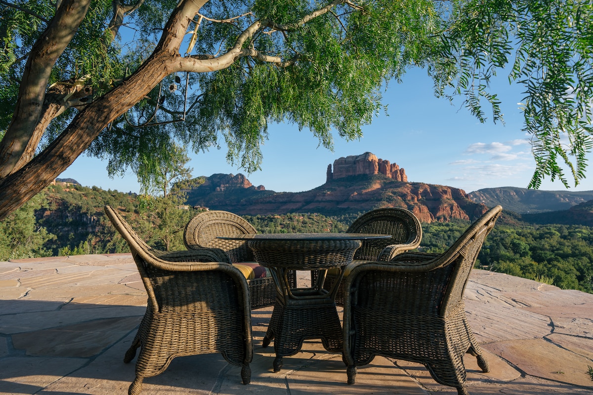 Perched on Oak Creek Cliffs is a peaceful, spacious and romantic home with painted panoramic views of sky, mountains and valley. This is truly an awe inspiring Sedona retreat away from a busy world and encourages spiritual healing. Located in the Chapel area, just a few miles to shops & restaurants but seems like a world away. Cathedral Rock, Bell Rock, Broken Arrow and other trails are very nearby. You can also try your hand at fly fishing in our communities' private section of Oak Creek.