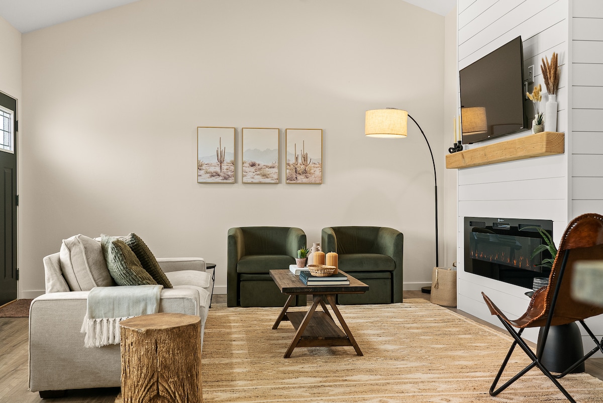 This stunning bohemian tiny home won "best of the West 2021" in 5280 Magazine. For people who dream of cozy and romantic interiors, clever design, large decks, and amazing amenities... TinyCamp resort delivers four beautifully decorated, retreats that deliver the ahhhhhhhh you need in a big way. Aspire is the perfect harmony between adventure + relaxation. Features a wall of glass, elevated deck + private patio, comfy queen bed (sleeps 2). Only 15 min. from popular Sedona hikes.