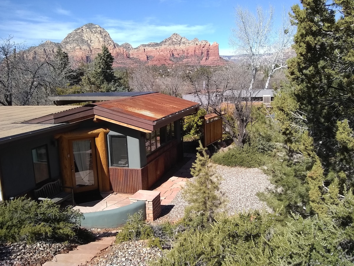Private studio, quiet, clean, well designed and all yours: Two separate rooms, Queen bed plus twin bed in bedroom or sitting room/kitchen upon request, full kitchenette, BBQ, washer/dryer, two porches, onsite parking. West Sedona, away from traffic! Walk to trails, cafes, restaurants, bars, theaters, and shopping. Whoever you are and wherever you are from, we welcome you and would love to host you for your days in Sedona (= our paradise :-) City of Sedona Acct: 014306 TPT License: 21494309