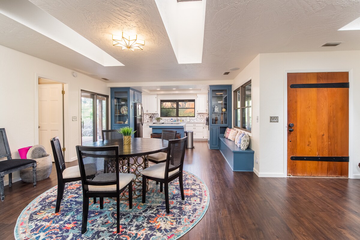 Casa La Courta is located along Oak Creek and is within walking distance to the iconic Cathedral Rock. You can access many other hiking and mountain biking trails from the property. The rustic cabin is on five private acres and is surrounded by pomegranate, fig, apricot and lemon trees and has a grassy yard with a bocce ball court. It’s the perfect spot to unwind and recharge. There is a trail down to the creek, so you can take a dip after a day of hiking. STR Permit #017132