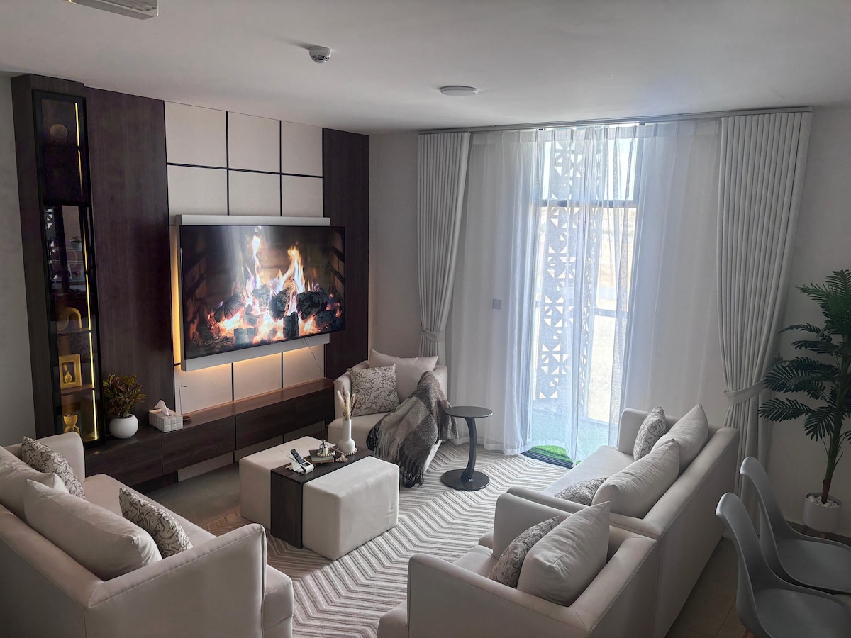 This stunning, luxury 2 bed rooms apartment offers breathtaking sea views & is just a short walk from the beach. Designed with comfort and elegance in mind, the space features cozy yet modern interiors, ideal for both relaxation and work. located just 10 minutes from the Airport & right next to Chedi Hotel, this apartment offers unmatched accessibility and a prime location. Enjoy exclusive amenities, including an indoor swimming pool, a gym, & access to a lush garden & serene lake