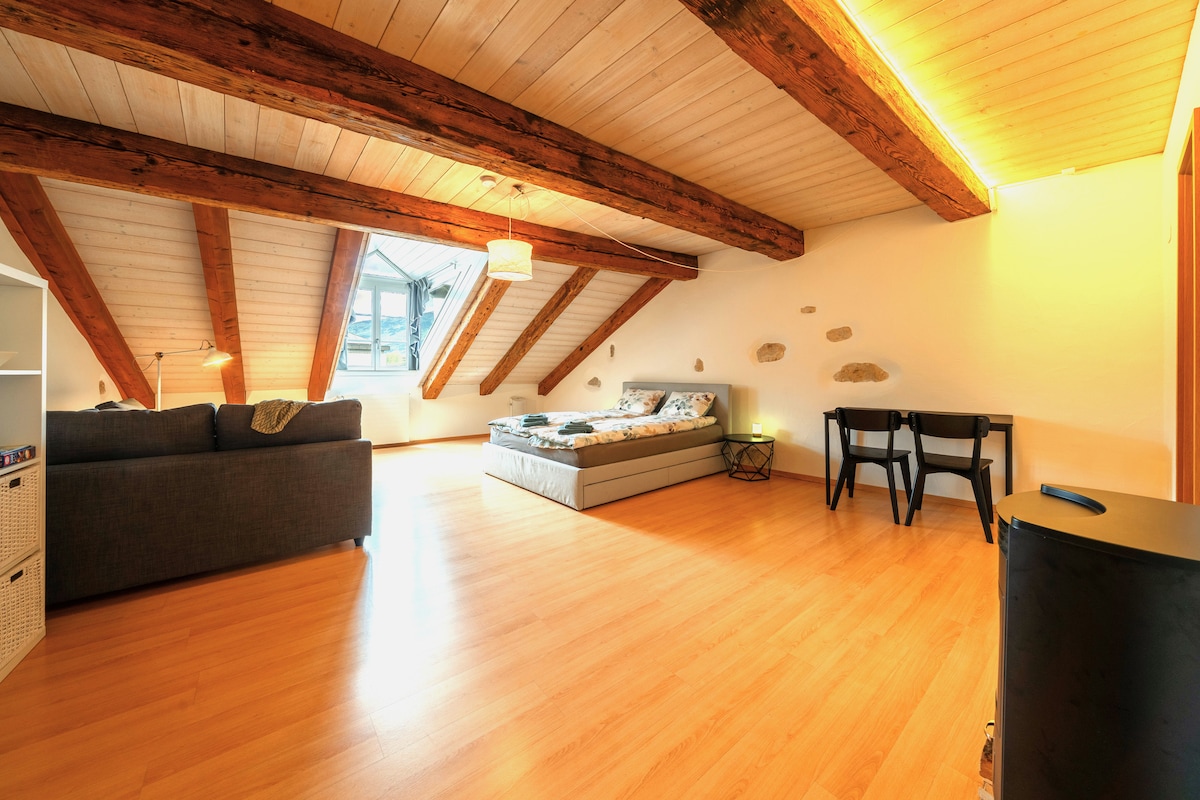 Ce duplex lumineux se situe sur les bords du lac de Bienne. Sa situation exceptionnelle (au bord de la forêt et à deux pas de la plage) vous permettra de passer des vacances inoubliables. Le design de type "industriel" moderne et épuré de cet appartement ne vous laissera pas indifférent...