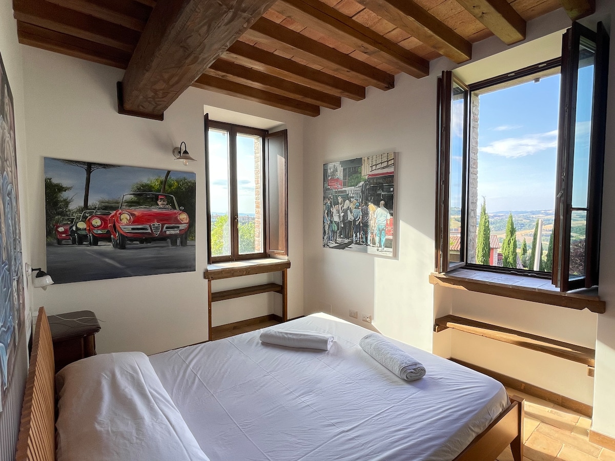 In a XII century building, the property, with a suggestive access, is valorized by a large, furnished terrace overlooking the wide valley facing Assisi, Spoleto, Bastia Umbra, Bevagna, Castel Ritaldi , Trevi, Montefalco and Perugia. My accommodation is suitable for couples, nature fans, families (max 2 children) and 'hairy' friends (pets). We are eco-friendly ... At Belvedere Electricity is 100% from renewable sources! :-)