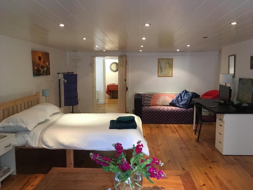 I'm opening my little creative oasis for visitors, while I am spending time away from home. The bright and cosy space is on the first floor of a characterful old building, across the road from Sefton Park and surrounded by trees, offering a comfortable stay. I have quite a collection of musical instruments, some more precious than others - if you want to play any of them please just ask me first. PLEASE MAKE SURE YOU READ THE FULL DESCRIPTION BEFORE BOOKING, AND KINDLY CONFIRM