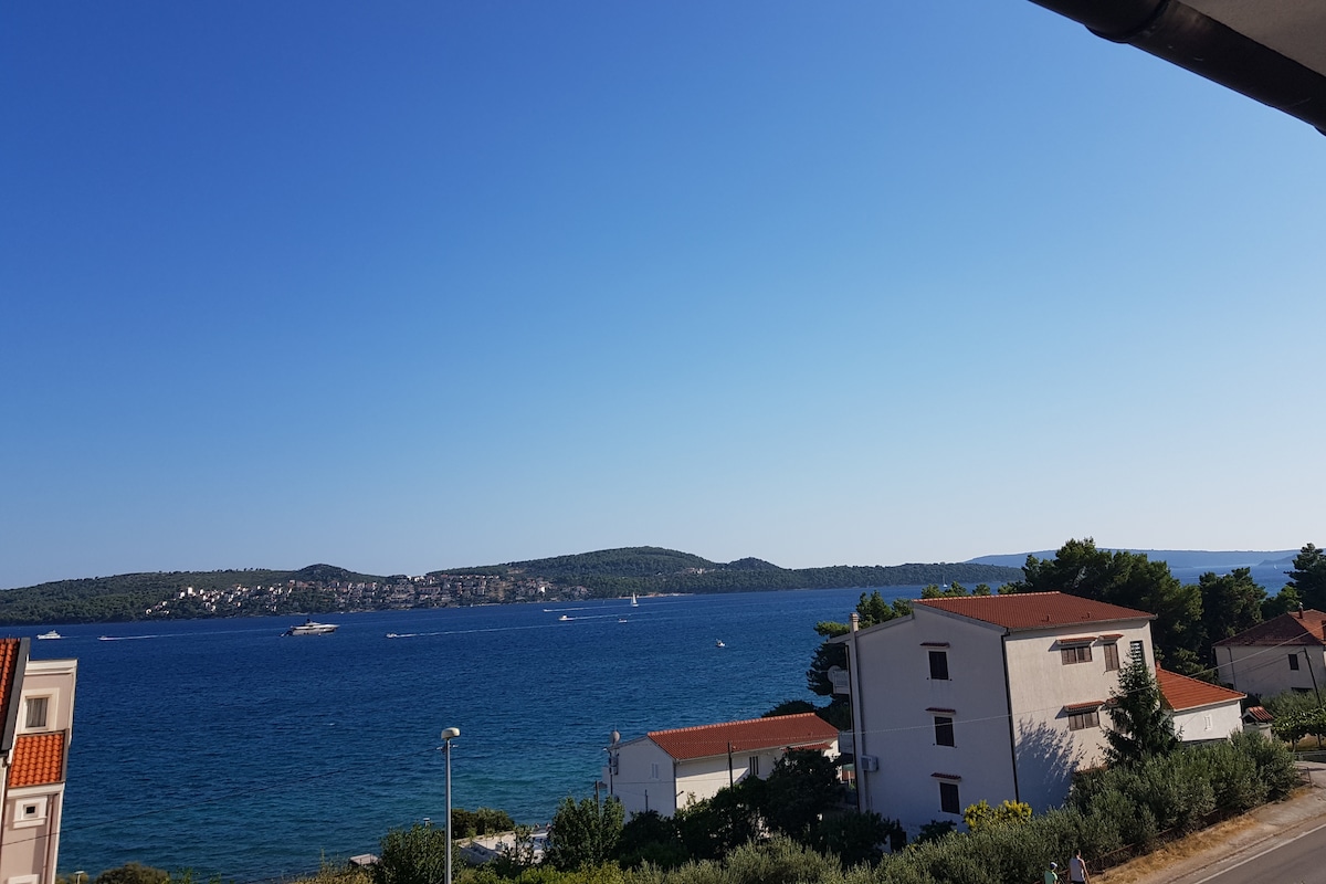 Seafront, top floor with amazing view. Situated between Split, the capital city of the Dalmatia Coast on one side and a beautiful resort of Trogir on the other side. It boasts a peaceful but convenient location, short bus drive to Split and Trogir.