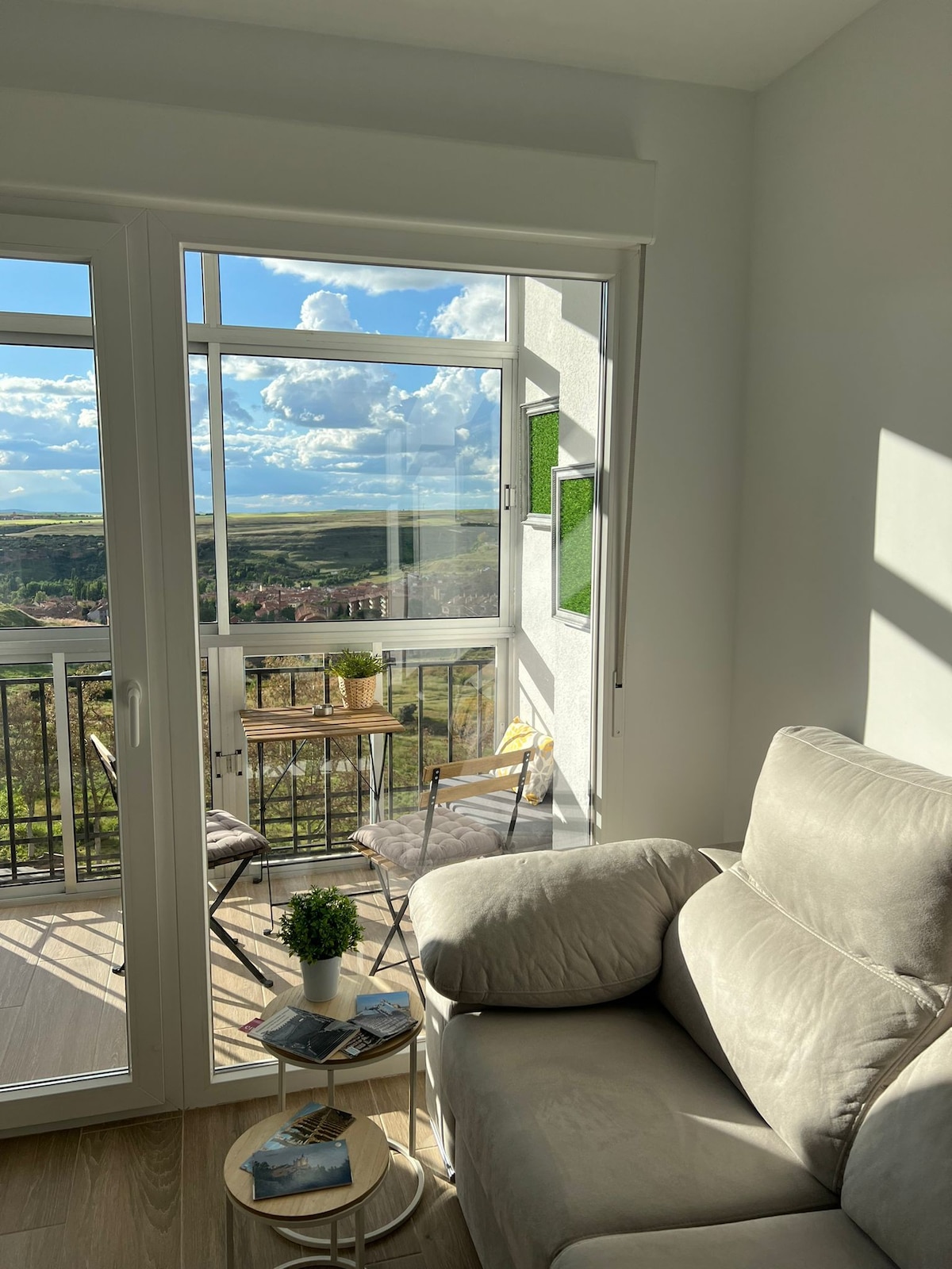 Piso totalmente reformado muy luminoso y con vistas maravillosas de la ciudad de Segovia. Aparcamiento gratuito en la calle y a escasos 15 minutos paseando del acueducto. Espaciosa entrada, cocina grande, dos dormitorios cada uno con cama de 1.50 m, salón con sofá cama de 90 cm, dos baños completos con ducha y una acogedora terraza. Es un quinto con ascensor. Calefacción central y agua caliente por termo eléctrico. Bus y supermercado a 200 m. Prohibido fiestas y mascotas.