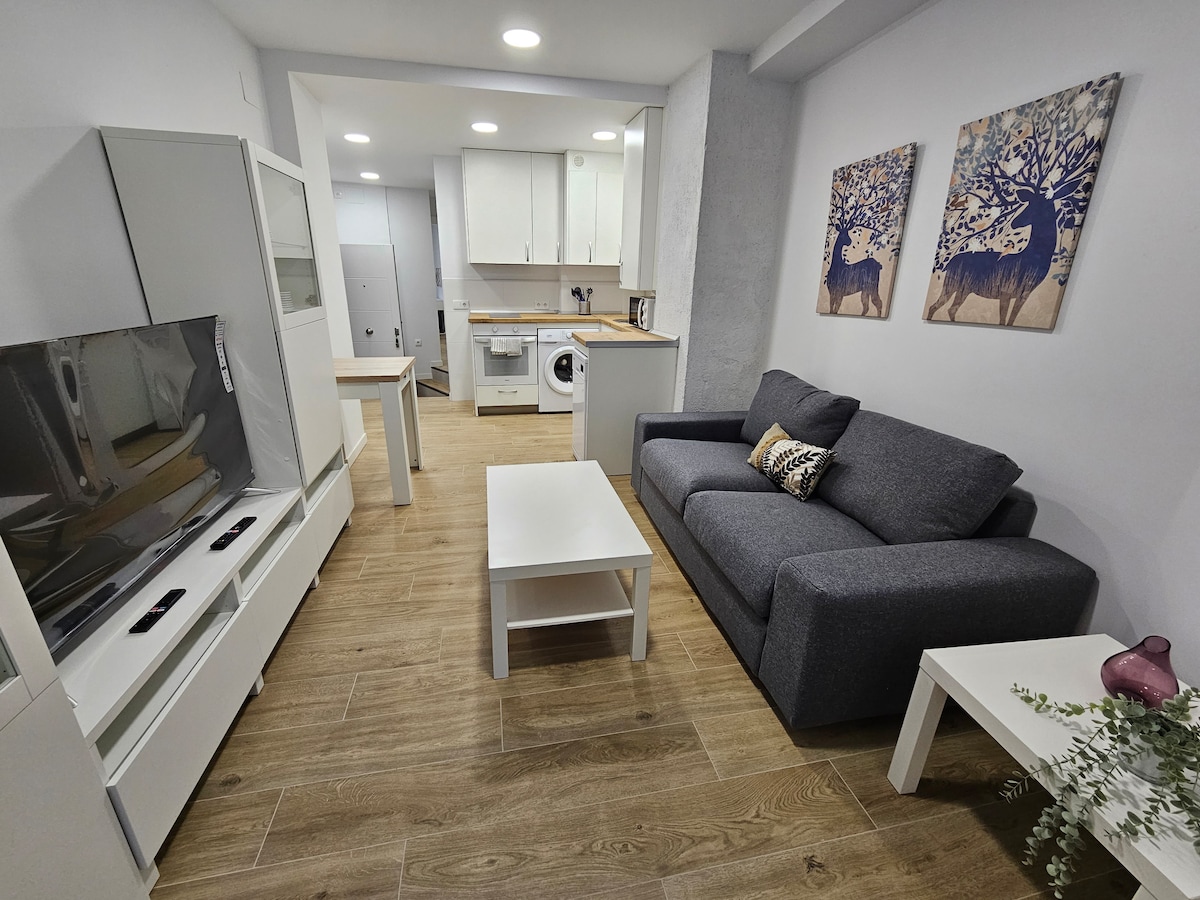 EXTERIOR view. Double bed. The decoration, color and interior layout may be subject to minor changes. Please note that there is no separation between the living room, kitchen and bedroom. Kitchenette with kitchenware. Private bathroom with walk-in shower (some adapted for PRM). The sofa will only be prepared as a single bed upon request or for reservations of 3 people (check the extra cost). Paid laundry room, toilets with shower and shared lockers on floor -1.