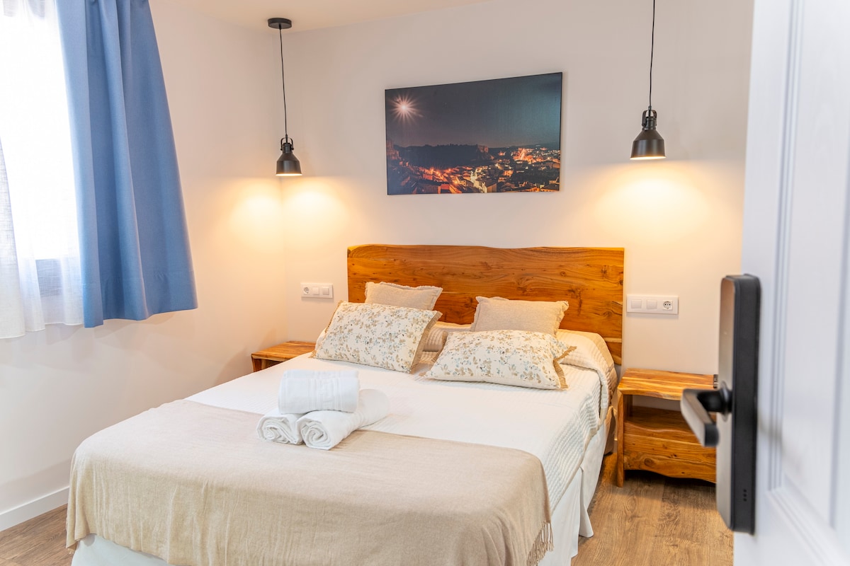 Pequeño hotel con un encanto único que te adentra en una de las tradiciones más antiguas de nuestra tierra, la cultura del vino. En pleno casco histórico y rodeado por dos iglesias del románico del siglo XI y XII, a pocos metros del castillo con su ladera de bodegas tradicionales. Cuenta con 4 habitaciones acogedoras equipadas con todo lo necesario para una estancia confortable. El hotel acoge una bodega tradicional, adaptada a museo y con espacio para degustar los vinos de la zona. Habitación 2