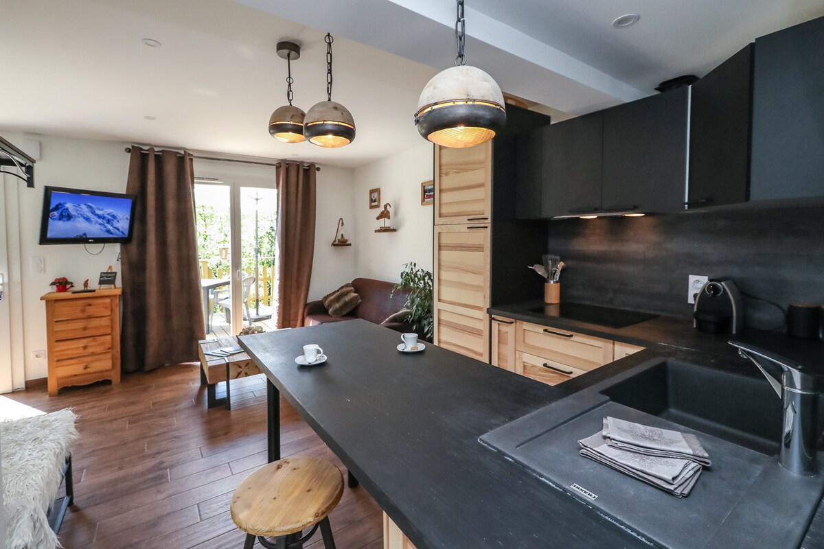 Plongez dans l'atmosphère chaleureuse de ce studio à Chamonix, où une vue sur le Mont Blanc vous accueille. La décoration minutieusement choisie ajoute une touche d'élégance à cet espace baigné de lumière, exposé plein sud. La salle de bain rénovée, le chauffage central, le lit encastré astucieux et les électroménagers haut de gamme se marient parfaitement pour recréer votre cocoon confortable. Idéalement situé, il offre la commodité de tout faire à pied (ville, pistes, spa).