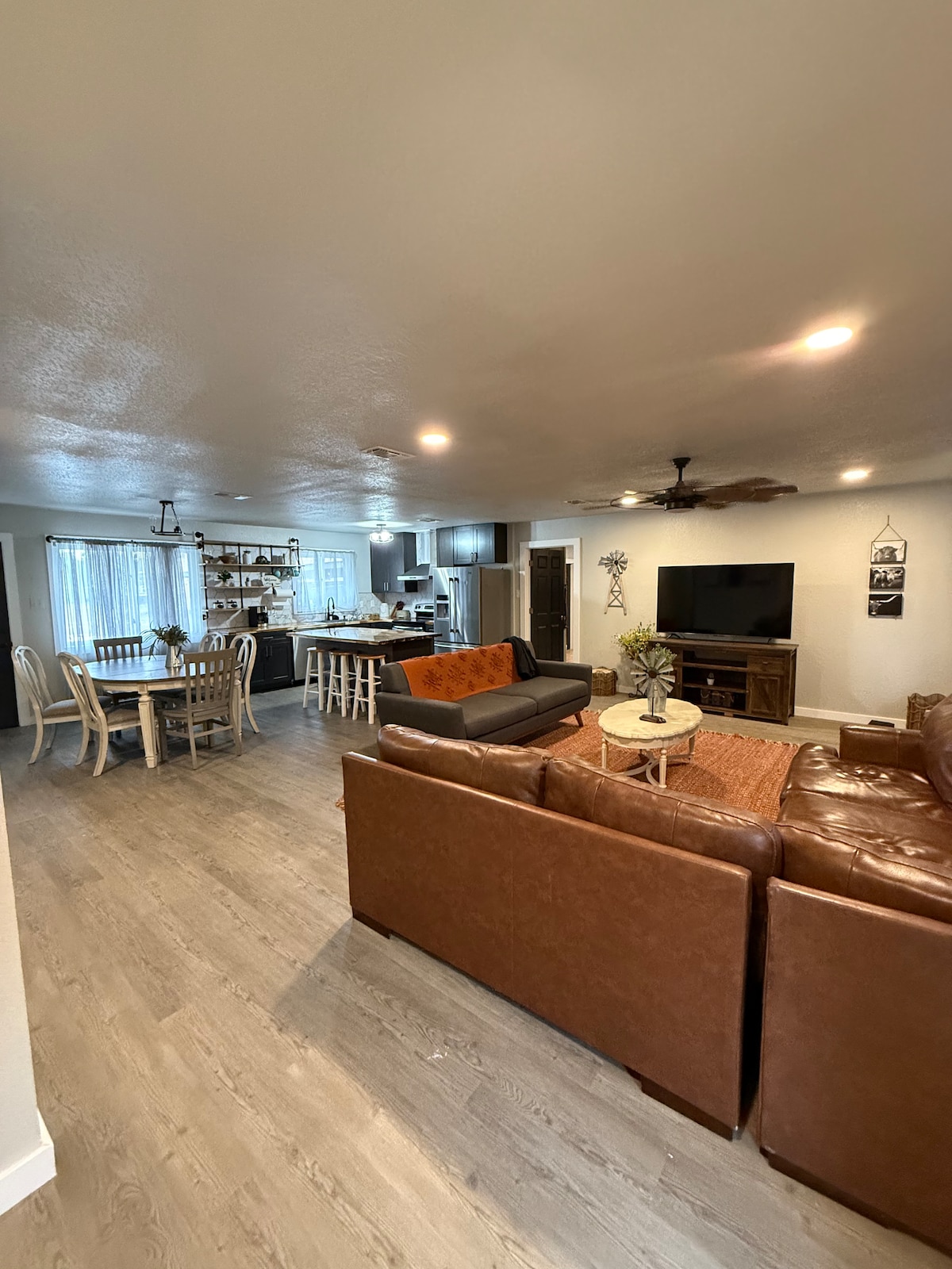Nestled along the Guadalupe River, Pecan Grove Retreat offers a prime location midway between Austin and San Antonio. Ideal for two families, the home boasts various amenities including three kayaks, a paddle board, ping pong table, foosball table, hammock, hammock chairs, fire pit, and charcoal grill. Enjoy a perfect blend of relaxation and recreation. Close to New Braunfels (25min), San Antonio (45min), Austin (1hr) and Houston (2.5hrs) Corpus (2.25hrs)