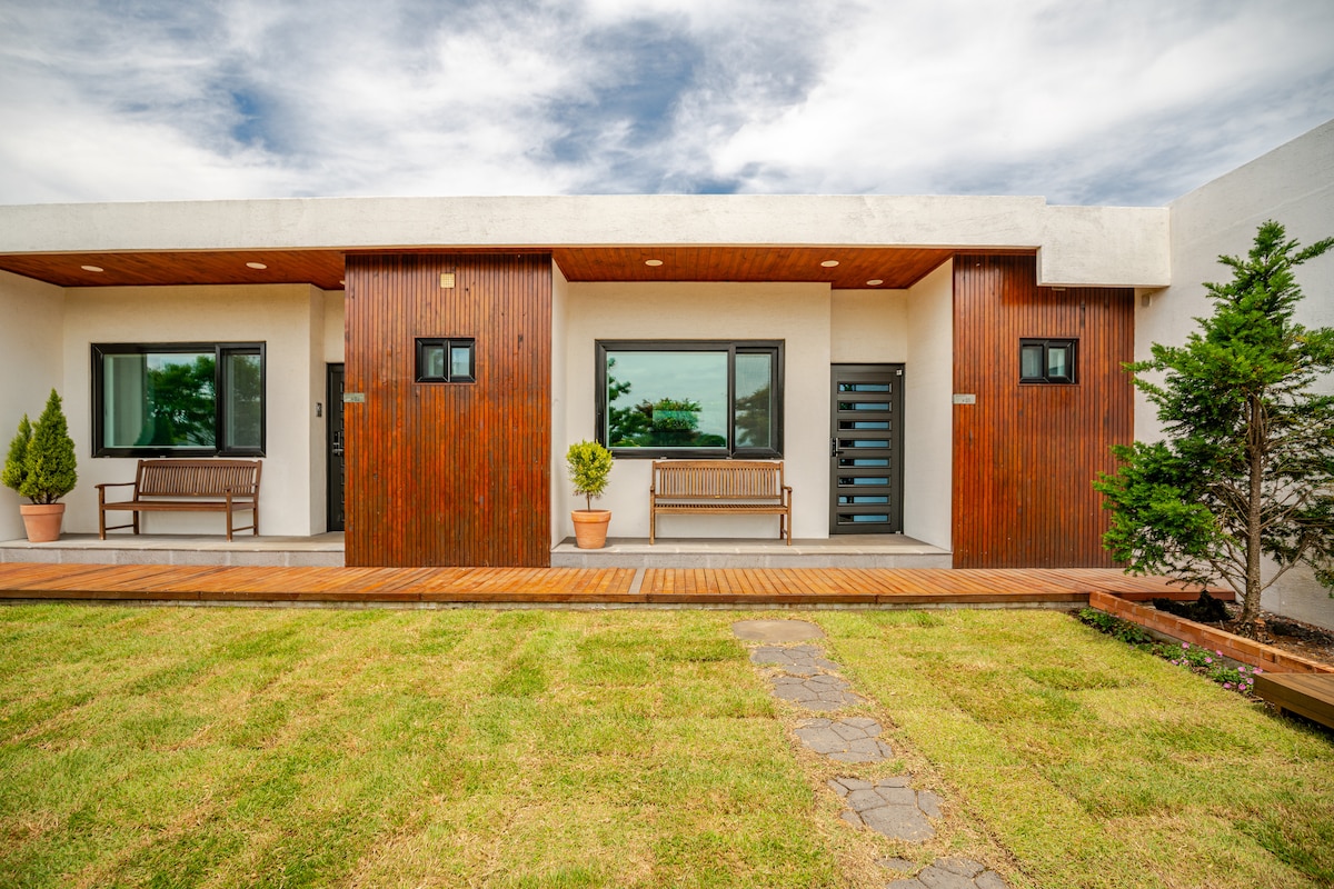 It is located in the east of Jeju Island. It is Haengwon-ri, close to the famous Woljeong Beach. The exterior is surrounded by stone walls. It is a comfortable and comfortable accommodation with modern comfort. It's quiet outside the window and you can see the countryside of Jeju Island. With Jeju Island's unique nature and quietness It's the perfect accommodation to relax alone with friends and lovers. There is a small house and a big house The house you're looking at is a "small house."