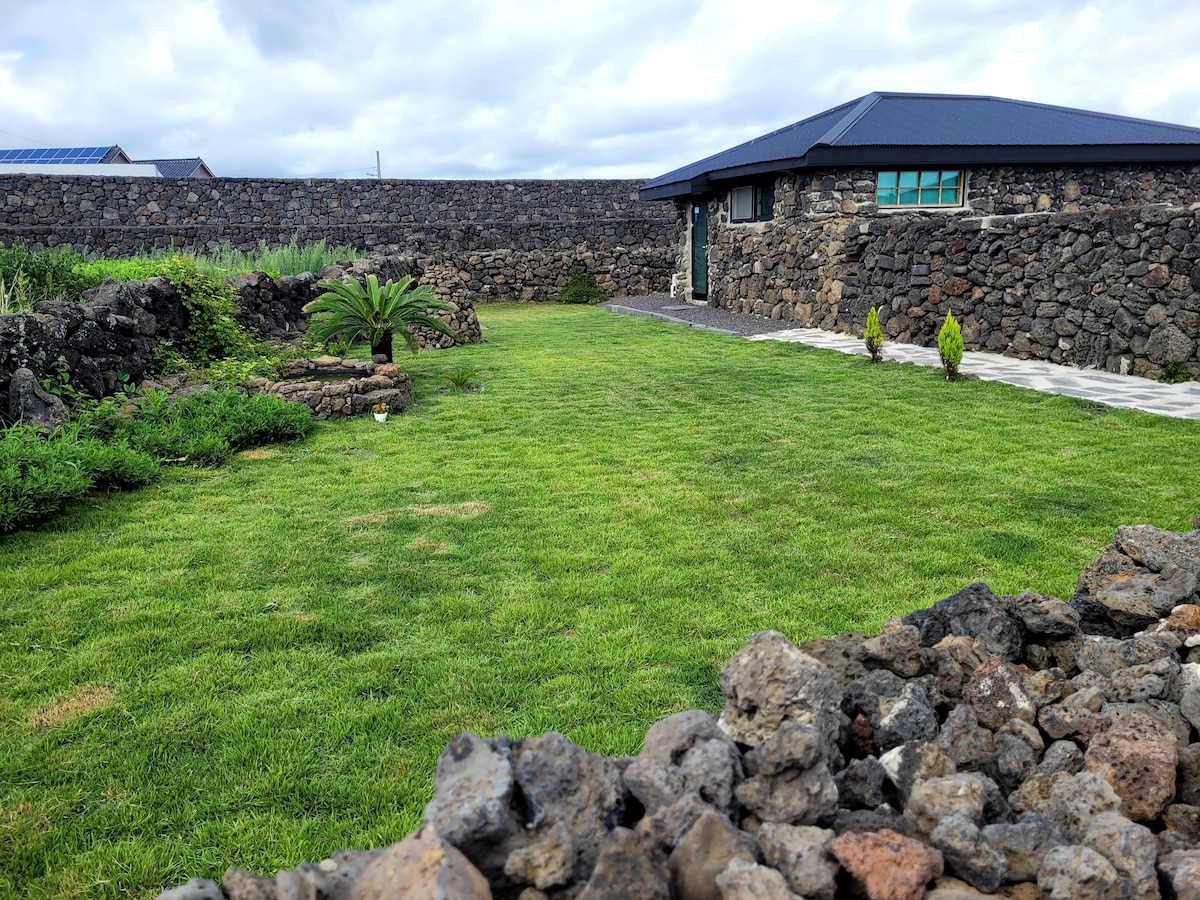 It is located in the east of Jeju Island. It is Haengwon-ri, close to the famous Woljeong Beach. The exterior is surrounded by stone walls. It is a comfortable and comfortable accommodation with modern comfort. It's quiet outside the window and you can see the countryside of Jeju Island. With Jeju Island's unique nature and quietness It's the perfect accommodation to relax alone with friends and lovers. There is a small house and a big house The house you're looking at is a "small house."