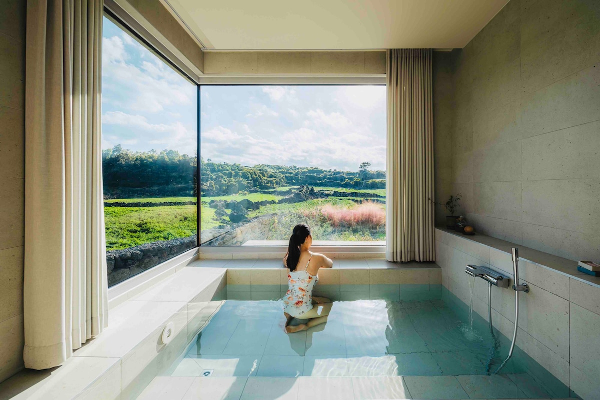 济州岛上的小奢华,花园内免费私人水疗+私人泳池+付费自助烧烤(一楼客房)
