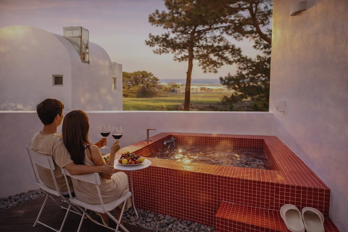 您好。 位于西归浦中心海崖之上的这处空间,拥有毫无遮挡、四季皆可欣赏的永久海景;远处岛影与近处浪声同框,晨昏光线在窗边缓慢流动。 客房面积约66㎡,为独立动线与私密入口设计,与其他旅客完全分离,让您在安静不被打扰的氛围里,尽情享受只属于自己的度假节奏。 虽为一室结构,却不同于常见小型单间。整体尺度宽裕,卧室、客厅、厨房分区清晰,收纳与采光充足,行动顺畅而舒适。露台备有SPA浴池与烧烤设备,泡汤时抬眼便是海天一色,微风与炭火香气交织,轻松实现想象中的海景BBQ浪漫。 室内以温暖的灯光与简洁的材质营造疗愈感,配备舒适寝具与基本厨具,适合情侣、好友或独自旅行者长住几晚。夜里关灯后,海面渔火点点,像把星星落在水上。无论晴雨,都有各自的美。期待在此再相遇。 清晨可在无边际泳池旁眺望开阔海面,伴随海风享用早餐,把旅途的慵懒与松弛慢慢装进口袋。泳池于5月至10月开放。 提供免费早餐的早餐休息厅,可一眼收纳最济州的蓝与範岛风景;屋顶花园则是观赏落日的最佳位置,金色余晖铺满天空与海面,适合拍照、发呆、小酌或静静聆听夜色降临。 愿这里成为风景与休憩自然相连、让身心慢下来的一处归所。 谢谢。