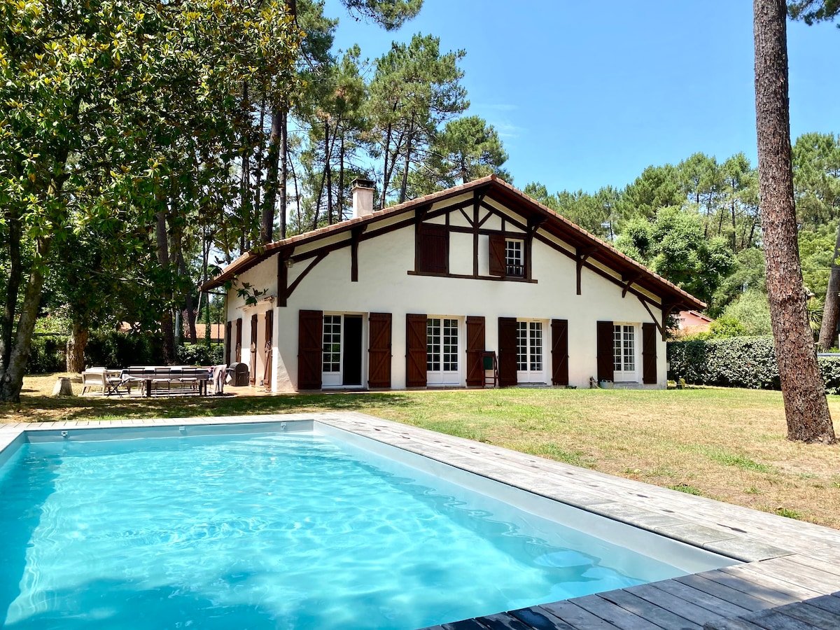 - Spacious 1-14 Person Villa - 7 Bedrooms, 4 Bathrooms +4 WC - Lush Garden for Outdoor Activities and Tranquil Moments - 4 Minute walk to Azur Lake for bathing Sailing&Canoeing - 8 Minutes away from 4 different beautiful beaches, for Sunbathing and Surfing - 10 minutes to the next PGA Golf course - Close by High-Quality Groceries and Gourmet Dining - 20 Minutes to Hossegor, and 35 Minutes to Biarritz and San Sebastián's Urban Delights