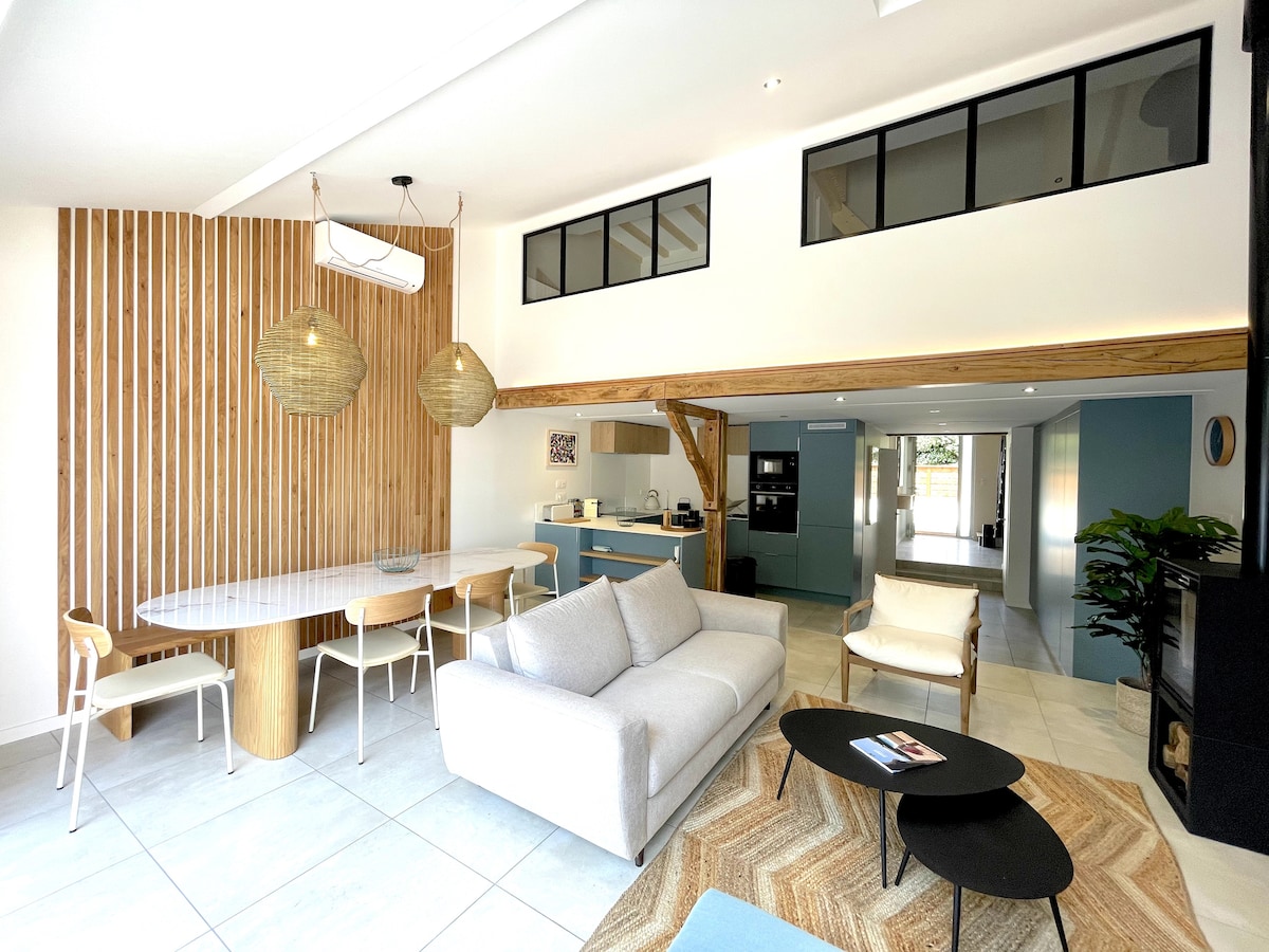 This fully renovated villa will seduce you with its charm and noble materials that compose it. Nestled in the heart of the pine trees and just a stone's throw from the ocean, it is the perfect house for a family stay or with friends.<br><br>The living area consists of a living room, a dining room with a bench for more conviviality, and a kitchen with soft and light colours. You will access a terrace nestled among the trees from this level to gather around a drink during the long summer evenings.