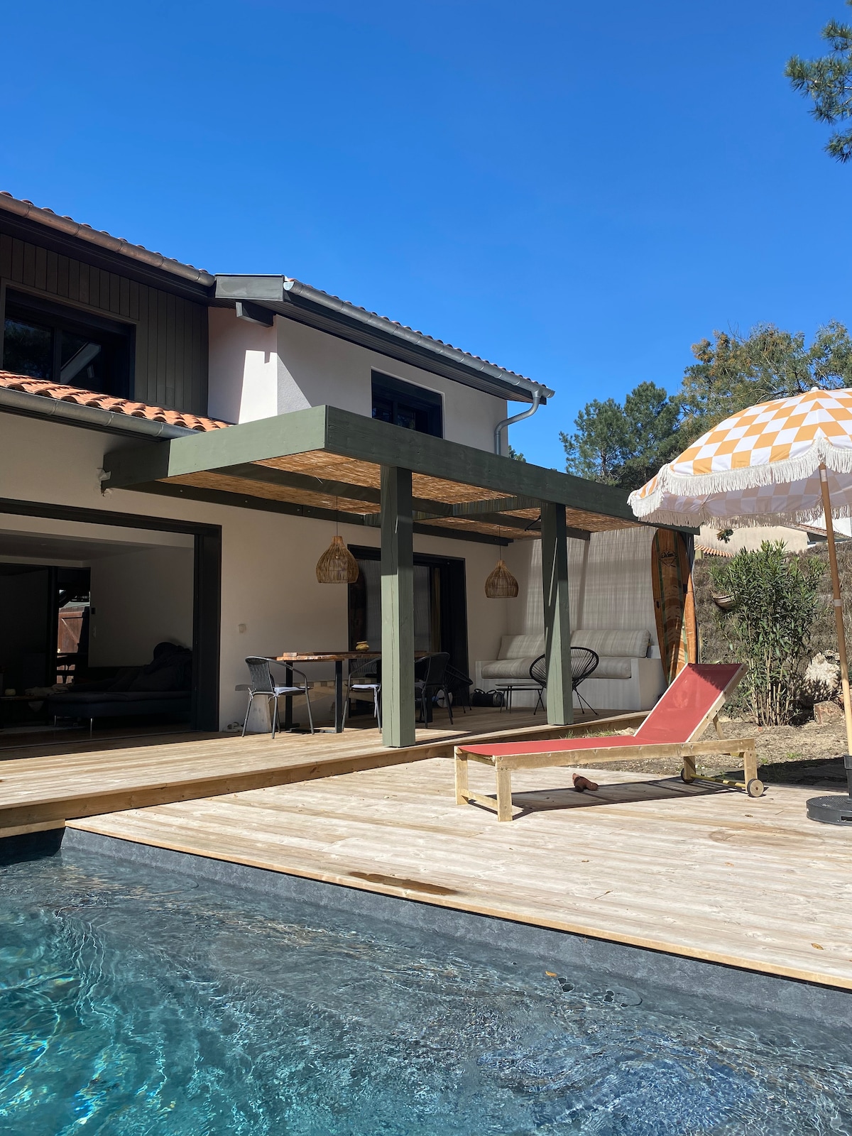 SurfersVilla, situé à Seignosse à 2 minutes d’Hossegor et de son célèbre lac, est un bien unique de 110m² pouvant accueillir jusqu’à 6 personnes. C’est un endroit idéal pour profiter des plages landaises et des meilleurs spots de surf d’Europe. - Plage à 300 m (accessible a pied). - Pistes cyclables directes vers Hossegor et le centre. - Accès rapide aux spots de surf Hossegor/Seignosse. Entre Océan, forêt et ambiance surf, c’est le lieu parfait pour un séjour en famille ou entre amis.