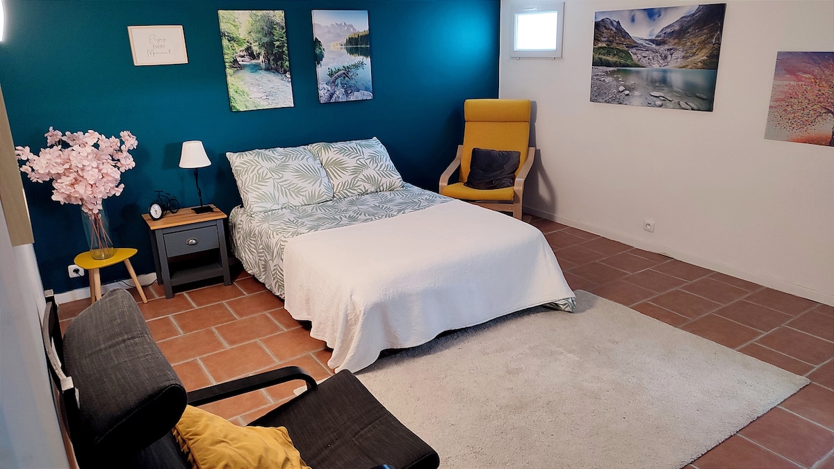 Studio, 24 mètres2, avec cuisine équipée, salle de bain & parking. Profitez de sa terrasse avec canapé, store banne et parasol INCLUS panier petit déj de 2 jours Lit double 140/190cm, hauteur sous plafond du studio 1,95m Le studio jouxte notre maison, terrain de 1000m2, quartier résidentiel Piscine partagée avec nous L’espace est défini pour vous donner de l’intimité Très paisible et central Randonnées St maximin la ste baume 4km Aix en Provence 35 minutes St-Raphaël/Marseille à 45 minutes