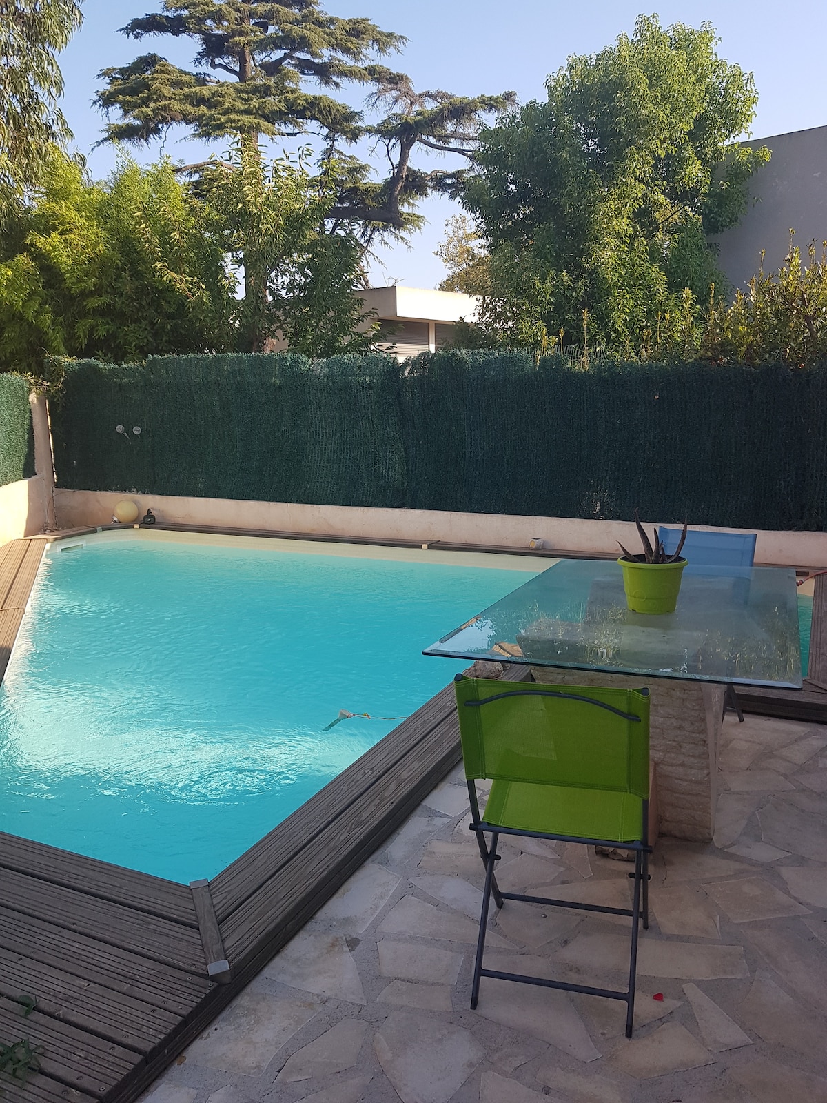 Located 1.6 km from the city center, the fully equipped T2 has a private enclosed garden, a parking space on the property and an exclusive access to the swimming pool from the beginning of May to the beginning of October (weather permitting). ). Quiet and surrounded by olive trees, you will find all the shops and supermarkets in town. Summer festivities. Animals are welcome. Baby equipment and free provision of bicycles. Warm and caring welcome. Do not hesitate to contact us