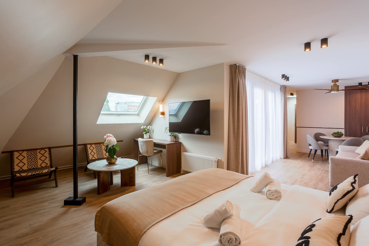 Book with ease: self check-in, flexible arrival, guaranteed comfort. Enjoy a modern and elegant suite, perfect for a night for two, a business trip, or a last-minute getaway.